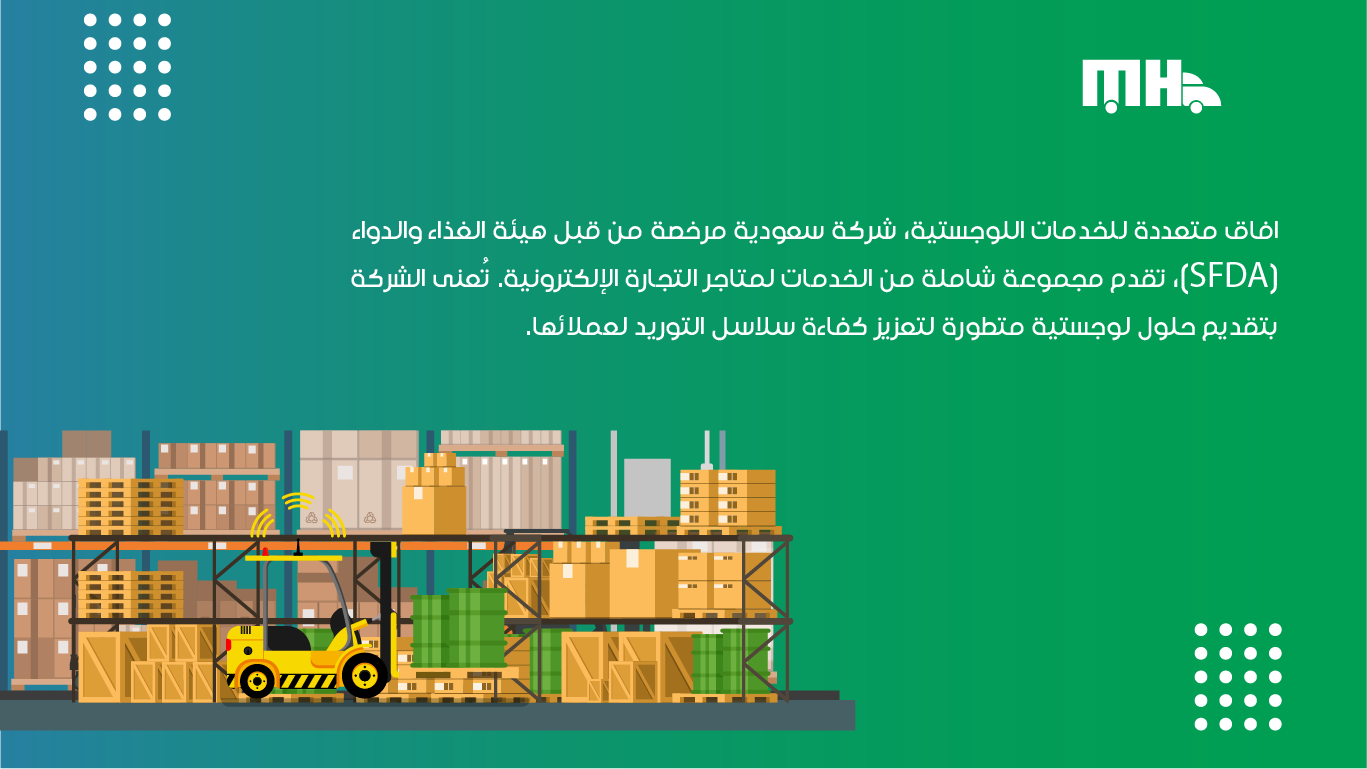 - الاعتماد والترخيص من الهيئة السعودية للغذاء والدواء، وهو ما يضمن التزام كافة العمليات بأعلى معايير السلامة والجودة الخاصة بالسلع المخزنة.