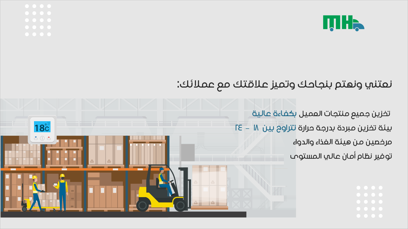 - توفير خدمات تخزين مبرد مخصصة، بالإضافة إلى معالجة المطالبات بكفاءة وسهولة.