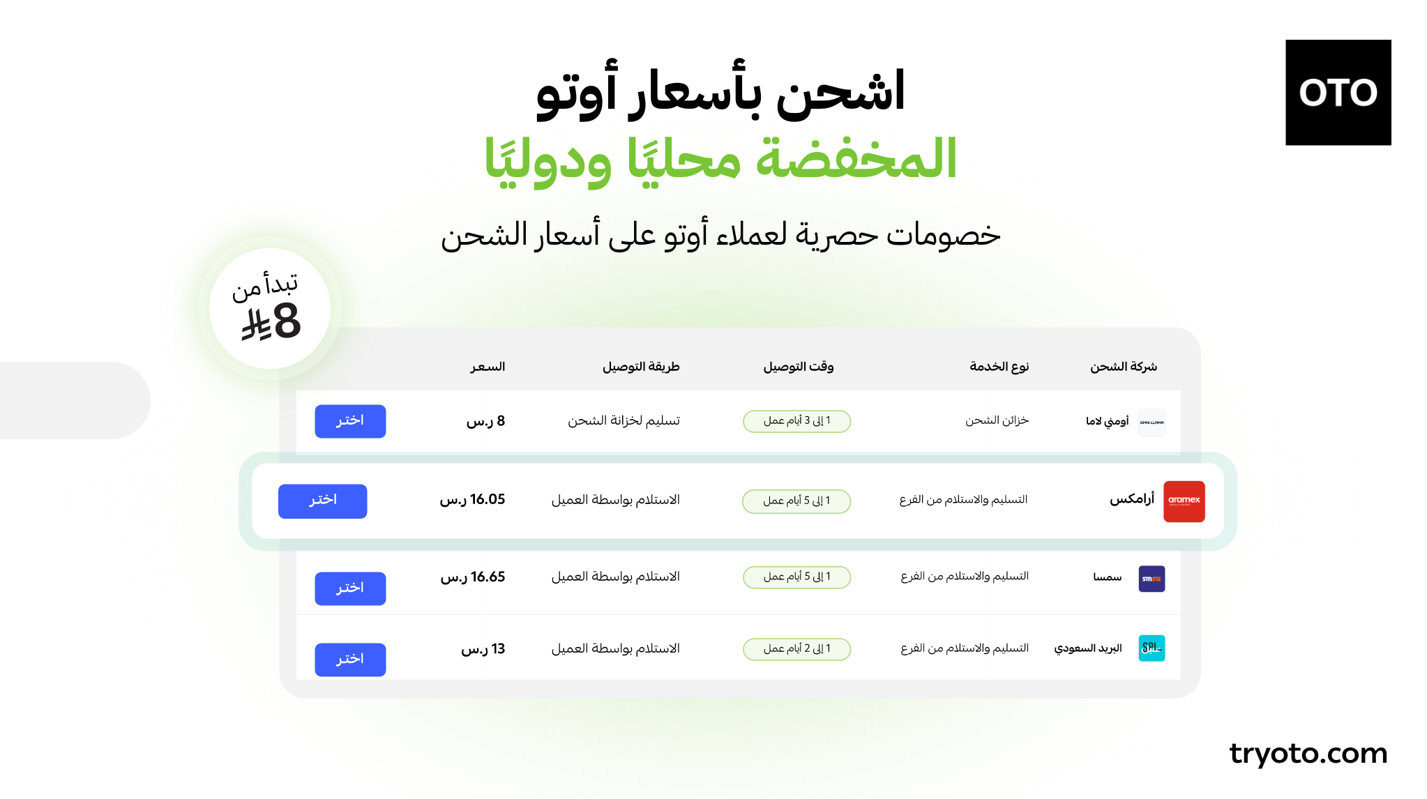 • إدارة شركات الشحن المتعددة عبر أكثر من 400 شركة محلية ودولية واختيار بين عقودك الذاتية أو أسعار أوتو المخفّضة