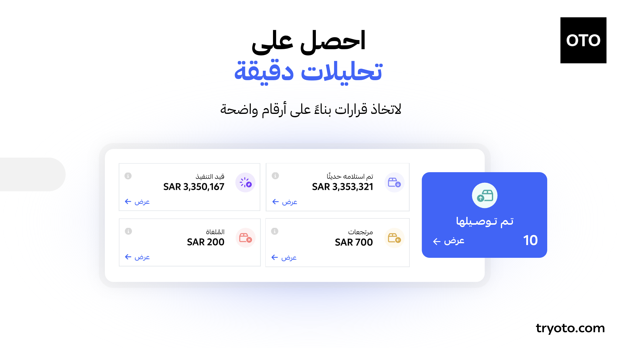 • تنفيذ شامل للطلبات من داخل المستودع مع تنظيم مهام الجمع والتغليف باستخدام تطبيق OTO PACK