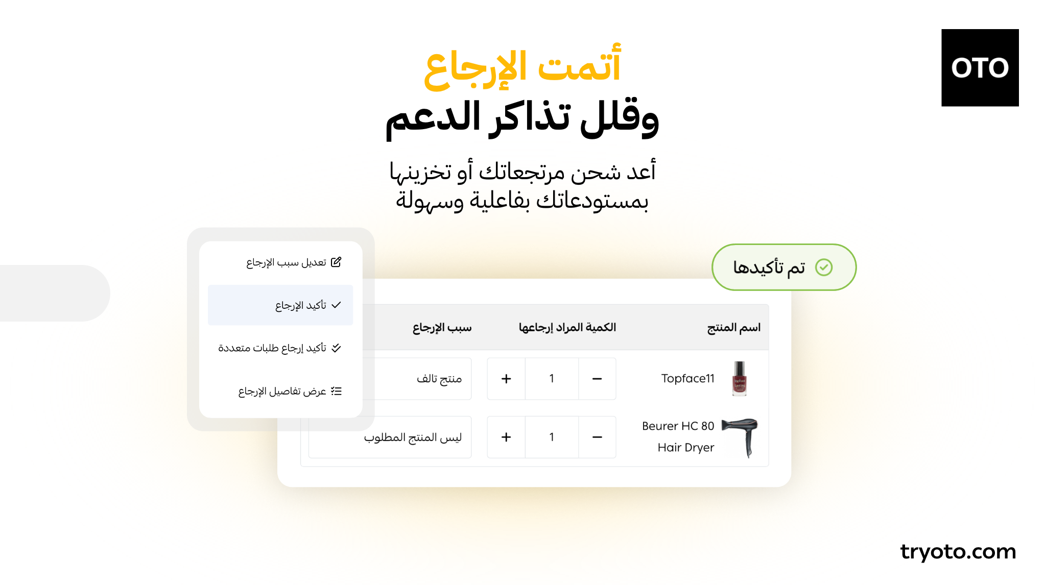 • إدارة متكاملة للمرتجعات بحيث تتم معالجة الإرجاع بسهولة مع أتمتة معظم الإجراءات وتقليل الضغط على الدعم