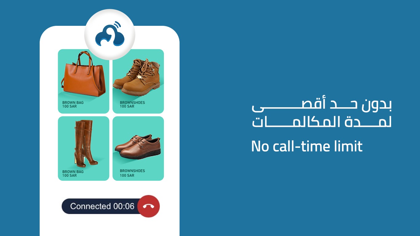 يتميز التطبيق بأن تجربة الاتصال تجري بالكامل عبر المتصفح ولا حاجة لأن يحمّل العميل أي تطبيق خاص أو يلجأ لخدمات خارجية. كما أن التكلفة تقع على صاحب المتجر، ولا يتحمل العميل أي رسوم.