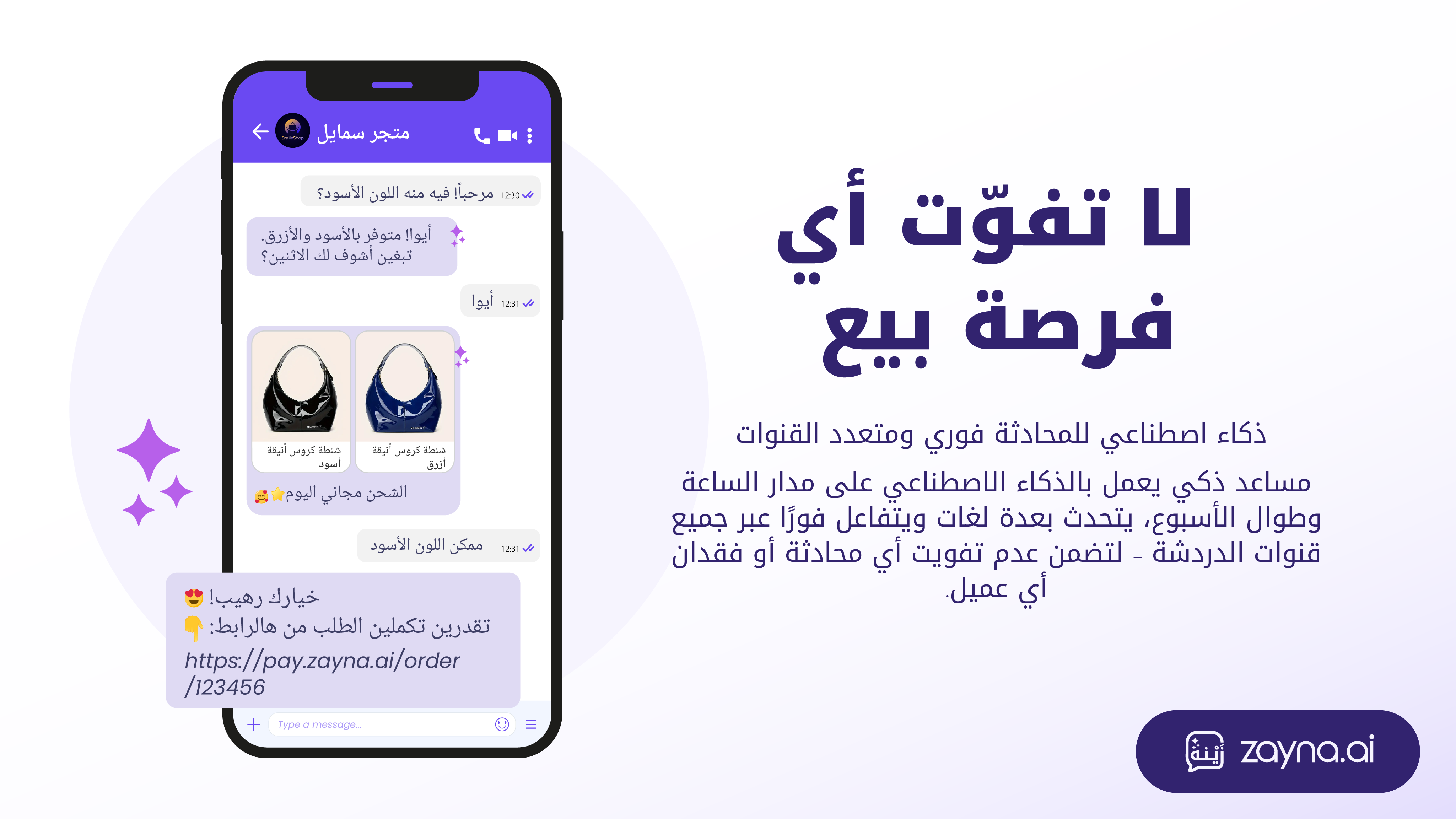 يسهل دمج زينة للذكاء الاصطناعي العمليات اليومية للمتجر من خلال تسريع الردود على استفسارات العملاء على مدار الساعة، مما ينعكس على رضا العملاء وثقتهم بالمتجر. في الوقت ذاته، تتيح الإشعارات الفورية متابعة الطلبات وتذكير العملاء بعمليات الشراء غير المكتملة، الأمر الذي يدعم رفع معدلات التحويل وإغلاق المزيد من عمليات البيع.