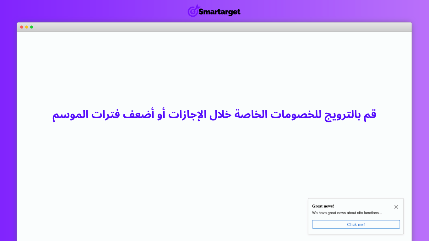 من المفيد أيضًا عند الحاجة لإعطاء إشعارات رسمية أو معلومات عاجلة لجميع العملاء دون استثناء، أو عند الرغبة في تعزيز الحملات الترويجية لجذب انتباه الزوار بوضوح وبأدنى حد من الإزعاج.