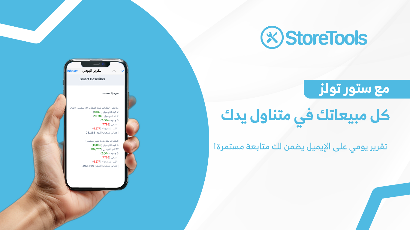 تطبيق أدوات المتجر – التقرير اليومي هو حل عملي مصمم لأصحاب متاجر سلة الذين يرغبون في الإطلاع على أداء متاجرهم بشكل يومي من دون الحاجة لمراجعة البيانات يدويًا. يوفر هذا التطبيق تقارير يومية ترسل مباشرة إلى البريد الإلكتروني، تتضمن ملخصًا واضحًا عن الطلبات والمبيعات لمساعدتك في اتخاذ قرارات سريعة ومستنيرة حول متجرك الإلكتروني.