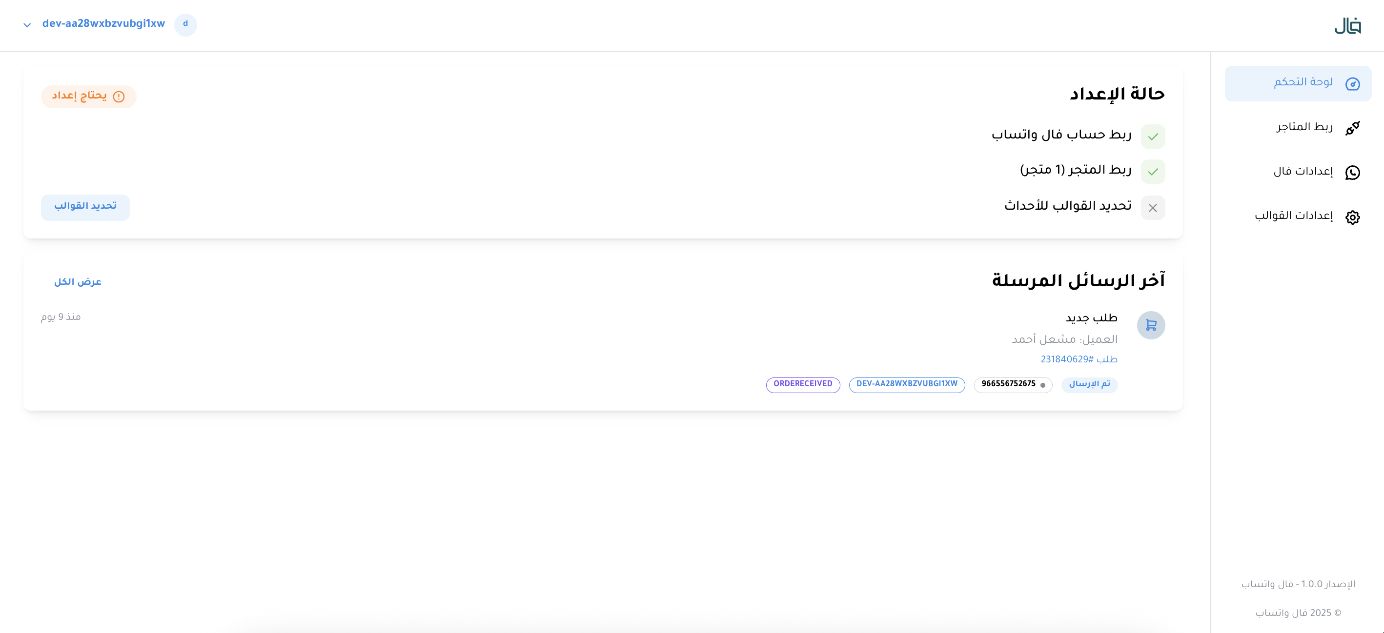 صمم التطبيق ليعمل بشكل تلقائي بعد الربط الأولي مع منصة فال واتساب، فبمجرد اكتمال الإعداد وتأسيس خدمة واتساب المؤسسي، تبدأ جميع الإشعارات وحالات الطلب في العمل آليًا دون أي تدخل يدوي مستمر.