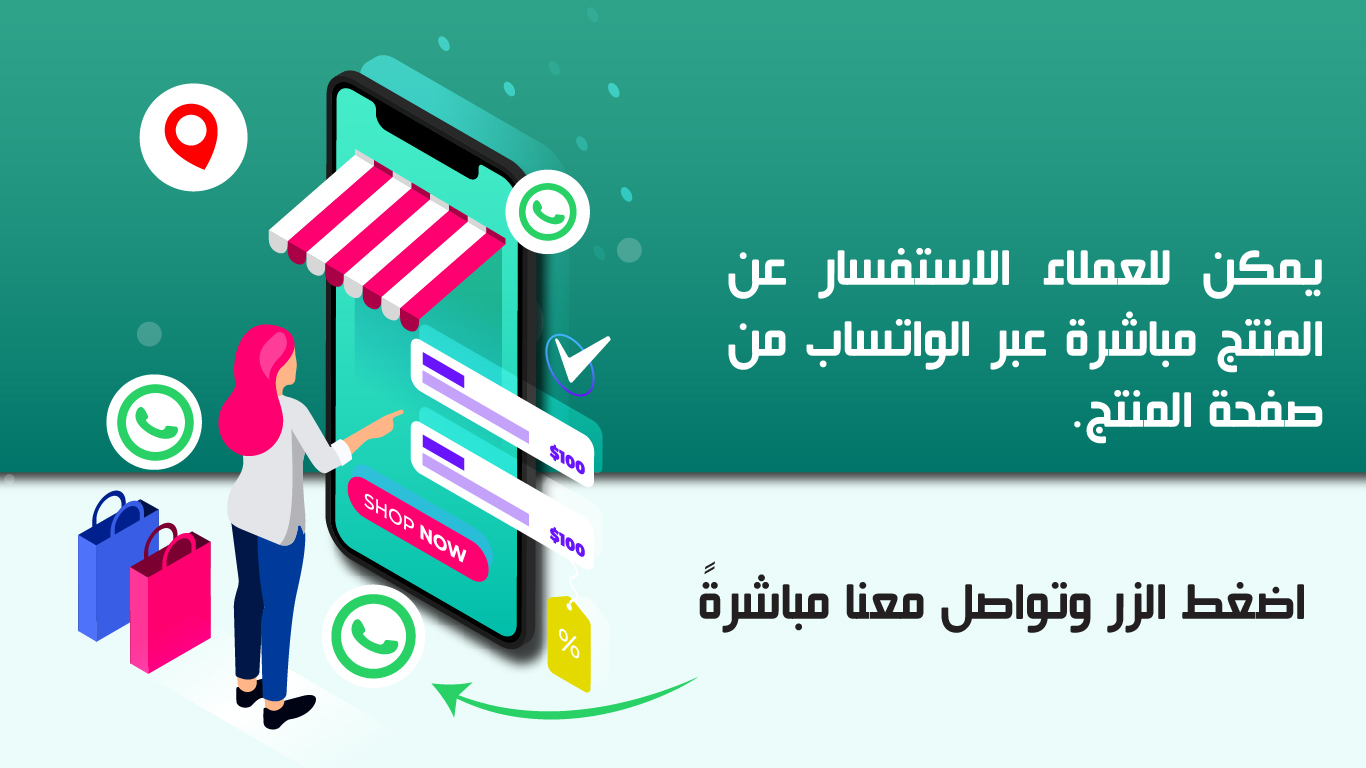 الحضور الدائم لزر WhatsApp في المتجر يتيح استجابة سريعة للاستفسارات، ما يساعد في حسم العديد من الصفقات قبل أن يغادر العميل متجرك للبحث لدى المنافسين.