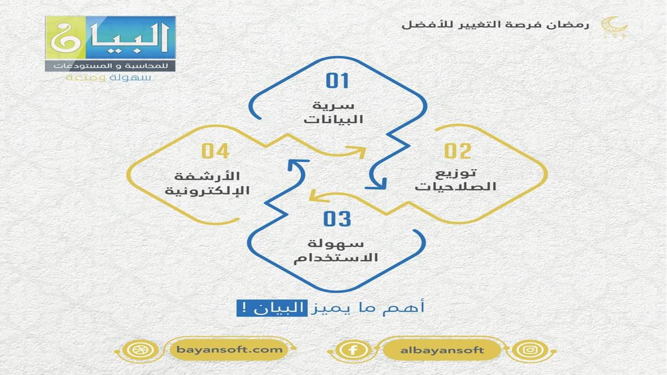 - اعتماد برنامج البيان من هيئة الزكاة والضريبة بما يواكب المتطلبات التنظيمية المحلية للمحاسبة الإلكترونية