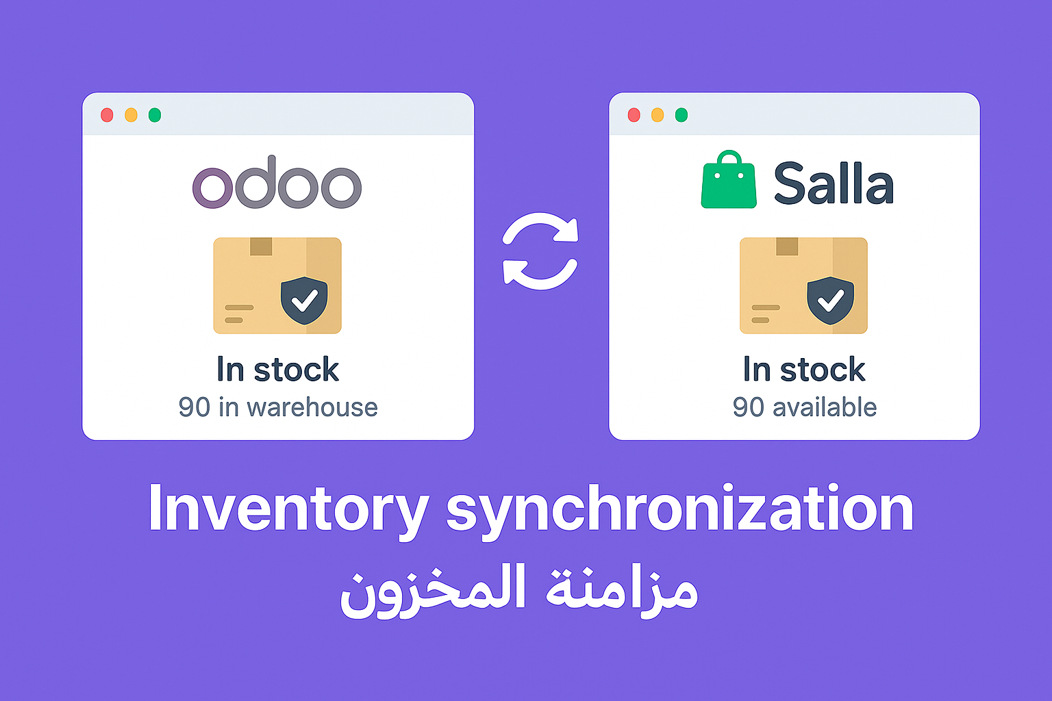 • إدارة المخزون في الوقت الفعلي وتحديثه باستمرار بين النظامين دون تدخل يدوي