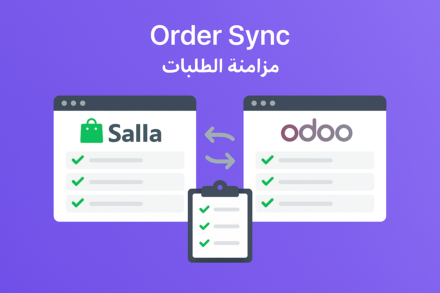 • مزامنة كاملة للطلبات الجديدة من منصة سلة لإدارتها في Odoo مع ربطها بدورة المبيعات وعمليات الفوترة