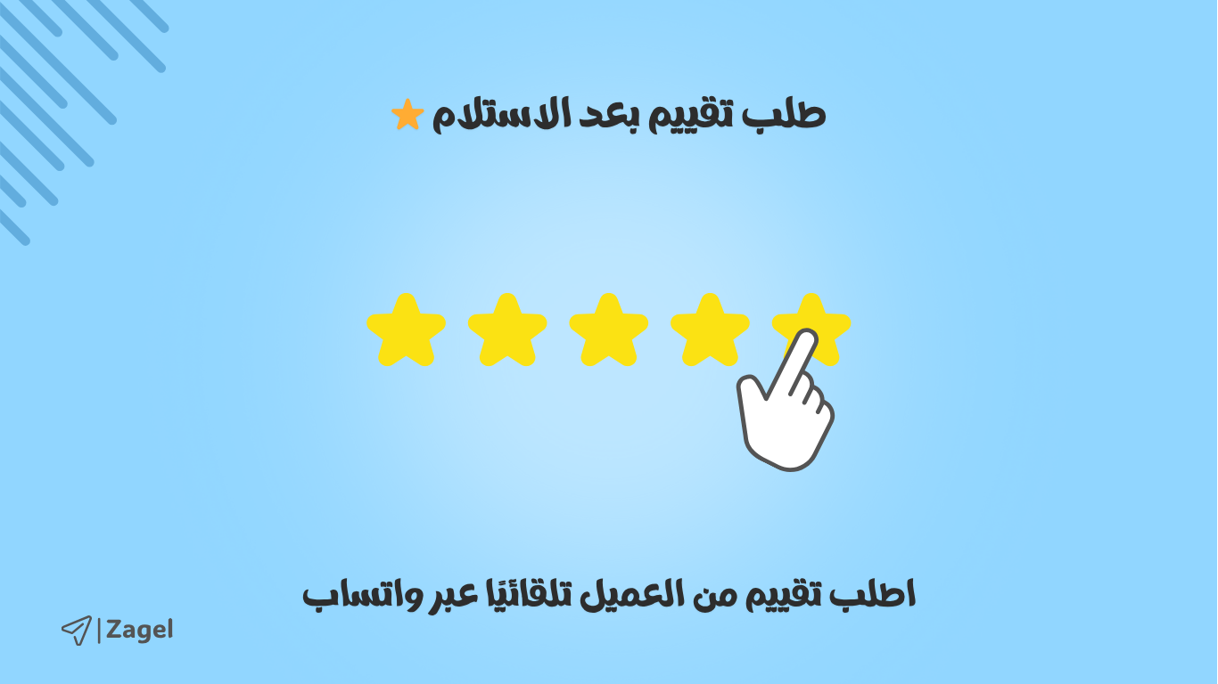 - طلب تقييم تجربة العميل بعد استلام الطلب وإرسال شكر تلقائي بعد التقييم