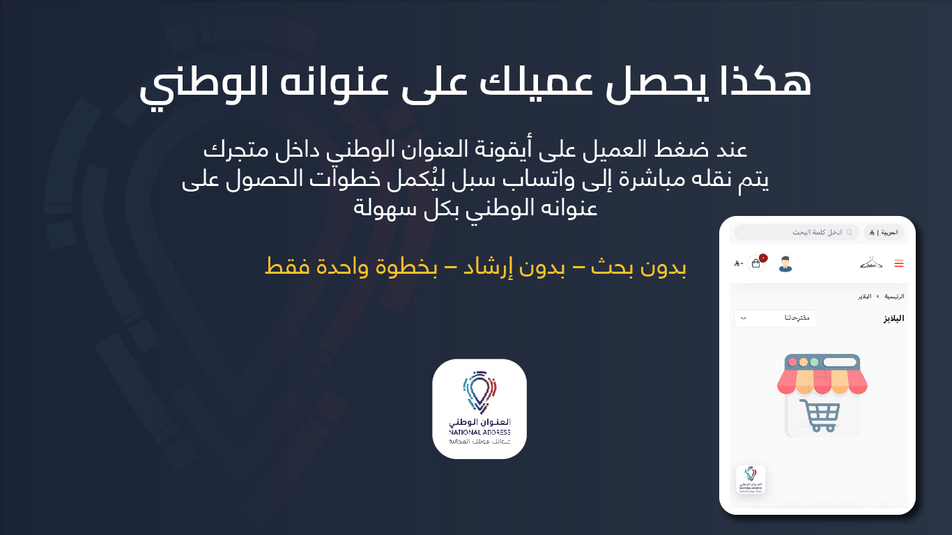- إضافة أيقونة ثابتة وبارزة في جميع صفحات المتجر لسهولة الوصول إلى العنوان الوطني الرسمي
