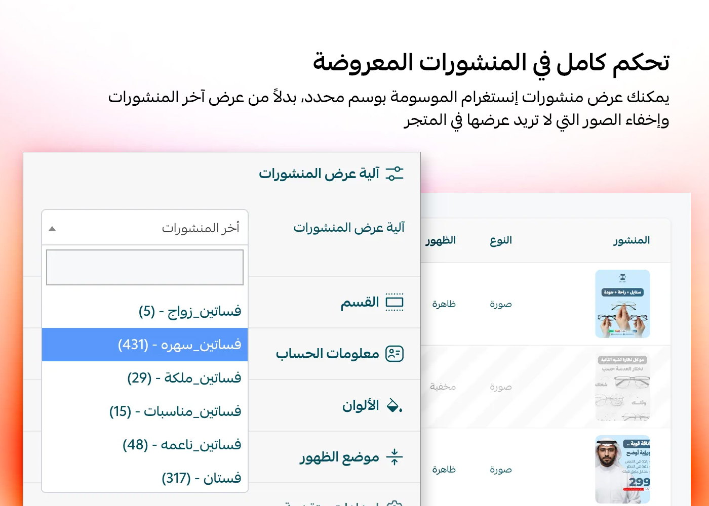- ربط كل منشور بمنتجات محددة من المتجر لرفع احتمالية الشراء المباشر