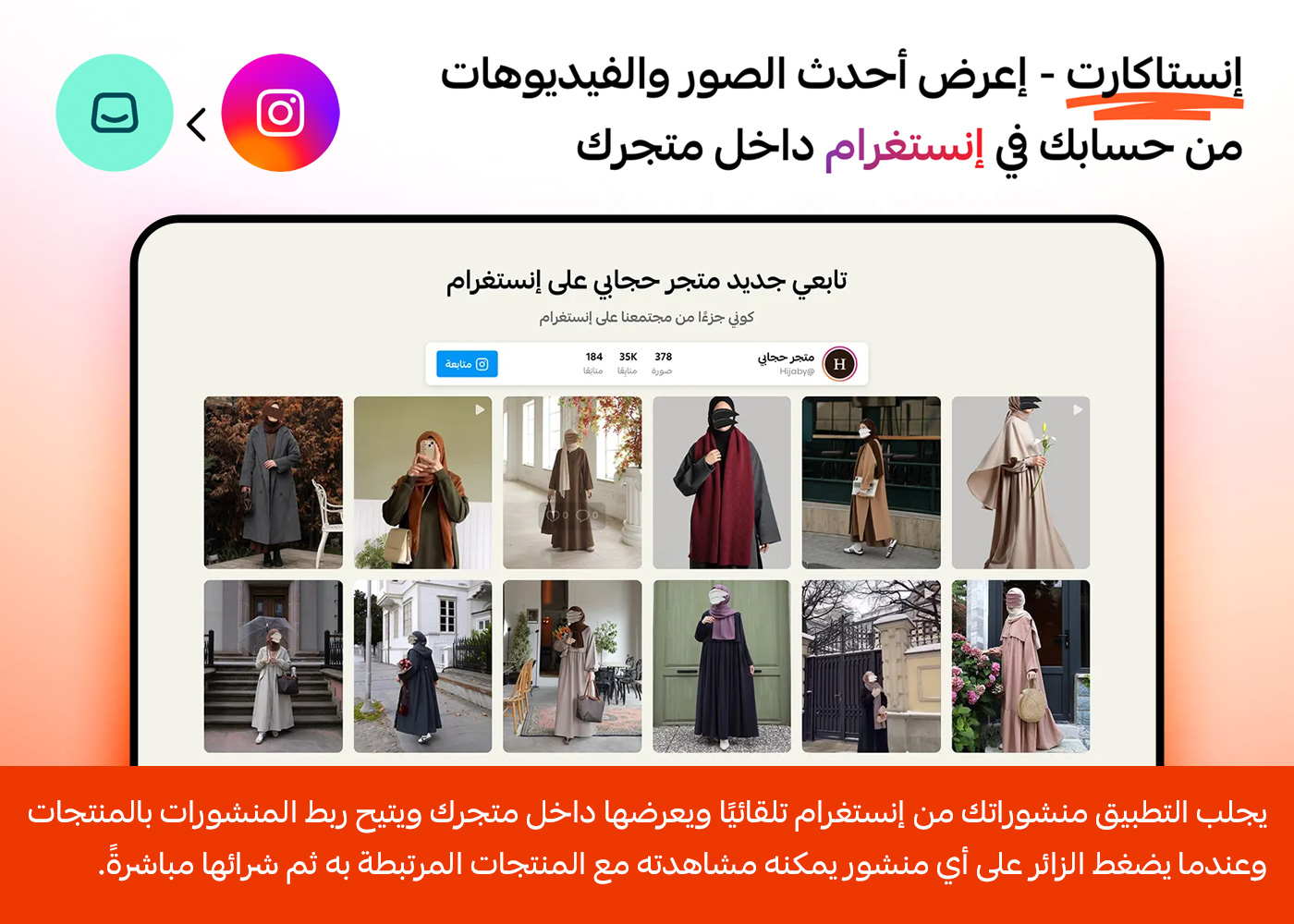- جلب تلقائي لأحدث منشورات إنستغرام لعرضها داخل المتجر دون أي جهد يدوي