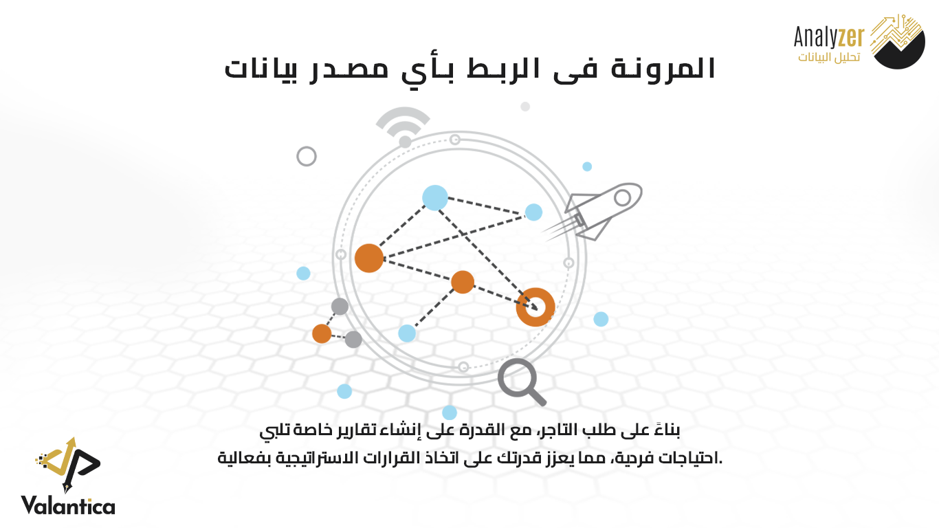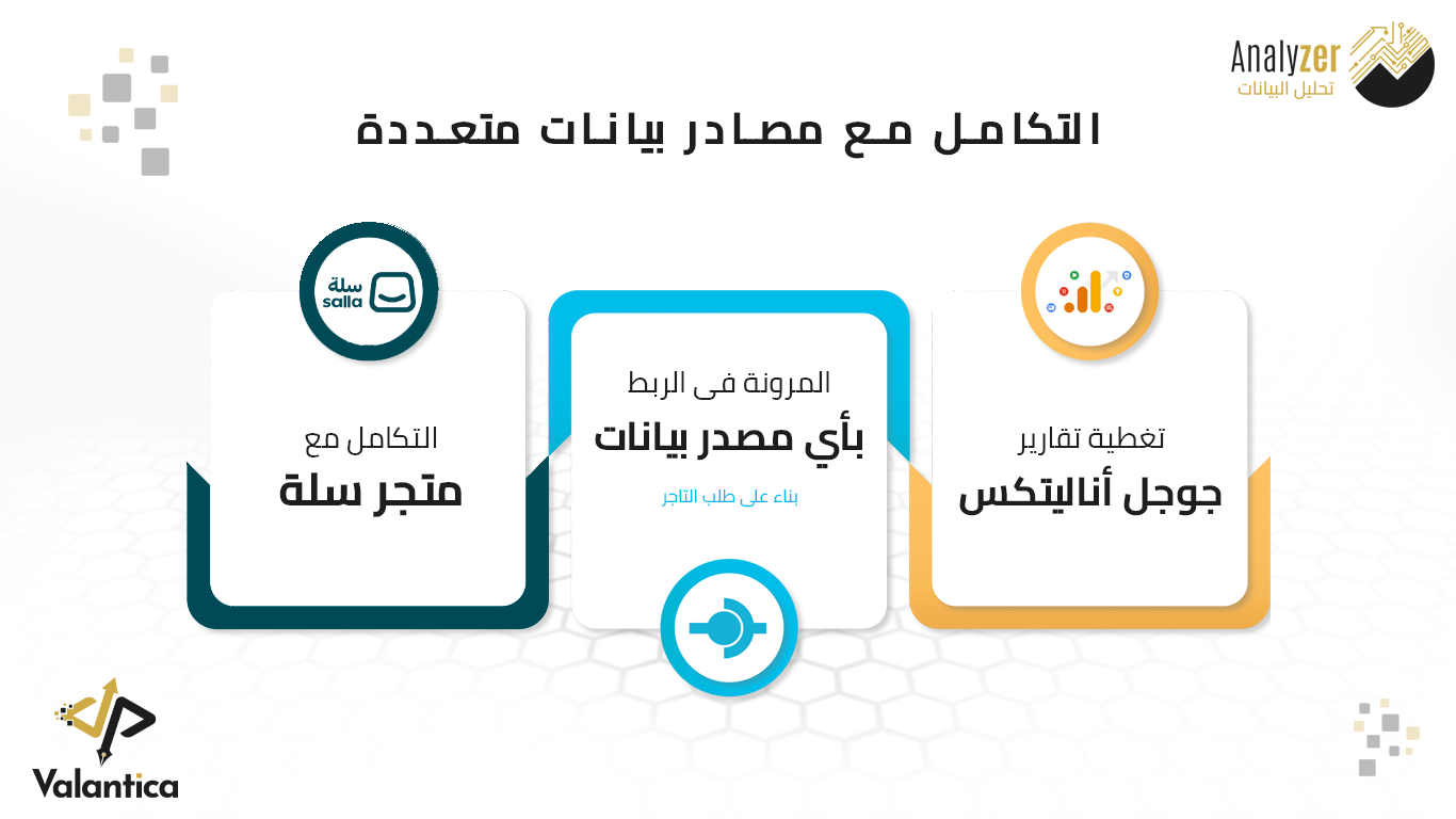 • إمكانية ربط مصادر بيانات إضافية وإعداد تقارير خاصة حسب متطلبات كل متجر