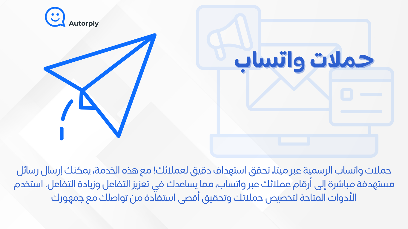 تطبيق أوتوربلاي واتساب هو أداة متقدمة مصممة خصيصًا لمساعدة أصحاب متاجر سلة على تعزيز التواصل مع العملاء عبر منصة واتساب بطريقة مؤتمتة واحترافية. يساعد التطبيق المتاجر الإلكترونية في أتمتة عملية إرسال الرسائل والتحديثات، مما يسهم في تحسين تجربة خدمة العملاء وزيادة فرص إتمام المبيعات. يجمع التطبيق بين خاصية الردود الذكية وأتمتة التنبيهات والرسائل الجماعية، مما يمنح التاجر مرونة كاملة في تفاعلاته اليومية مع العملاء بدون إجهاد يدوي أو تدخل متكرر.