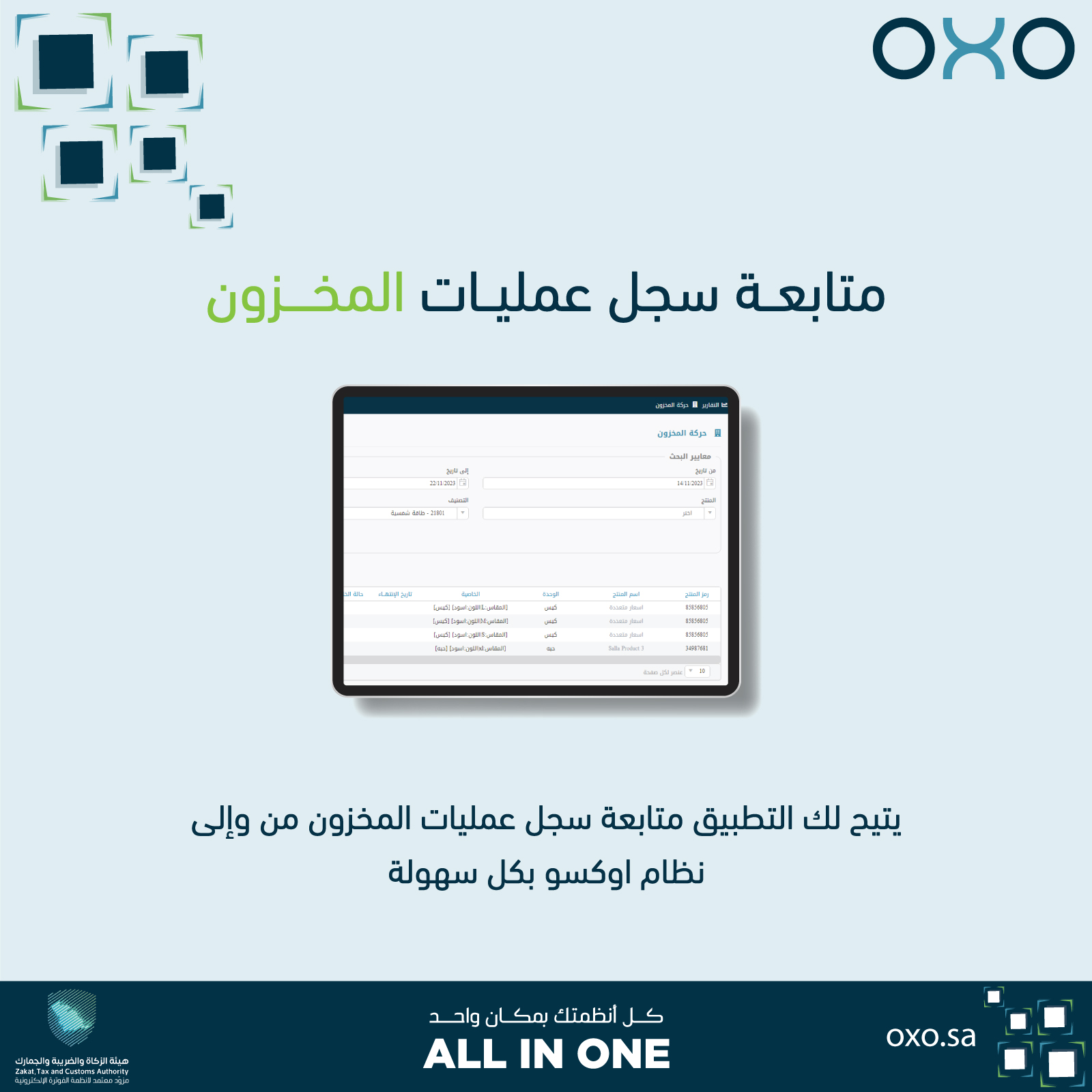 التطبيق يتيح كذلك متابعة دقيقة لسجل الجرد وكافة العمليات المخزنية، بحيث تبقى كل البيانات متاحة للتحقق في أي وقت من خلال لوحة إدارة أوكسو. يجب الانتباه إلى أن استخدام التطبيق يتطلب اشتراكًا فعالًا في خدمة أوكسو السحابية.