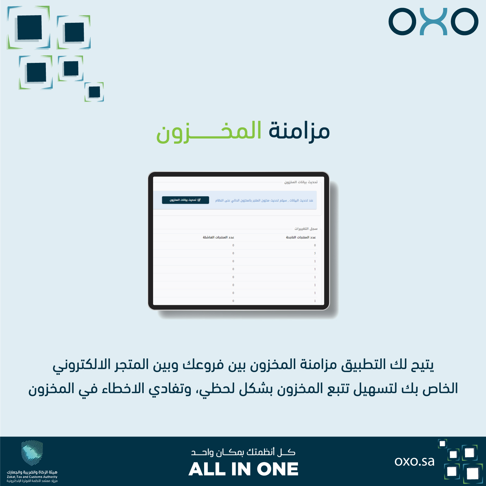 - مزامنة تلقائية وفورية للمخزون بين أوكسو ومتجر سلة الإلكتروني