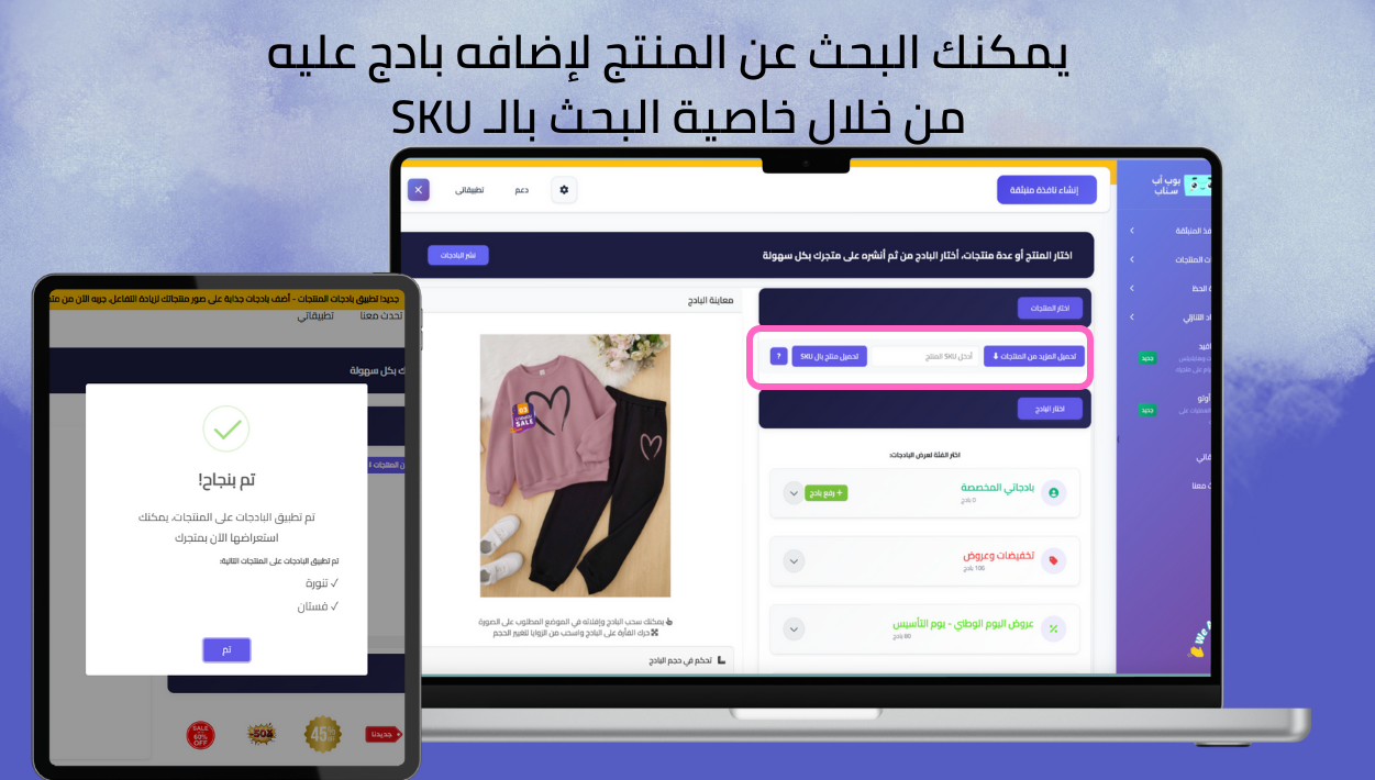 - دعم خاصية البحث عن المنتجات باستخدام رقم SKU لتسريع التطبيق الجماعي للعروض