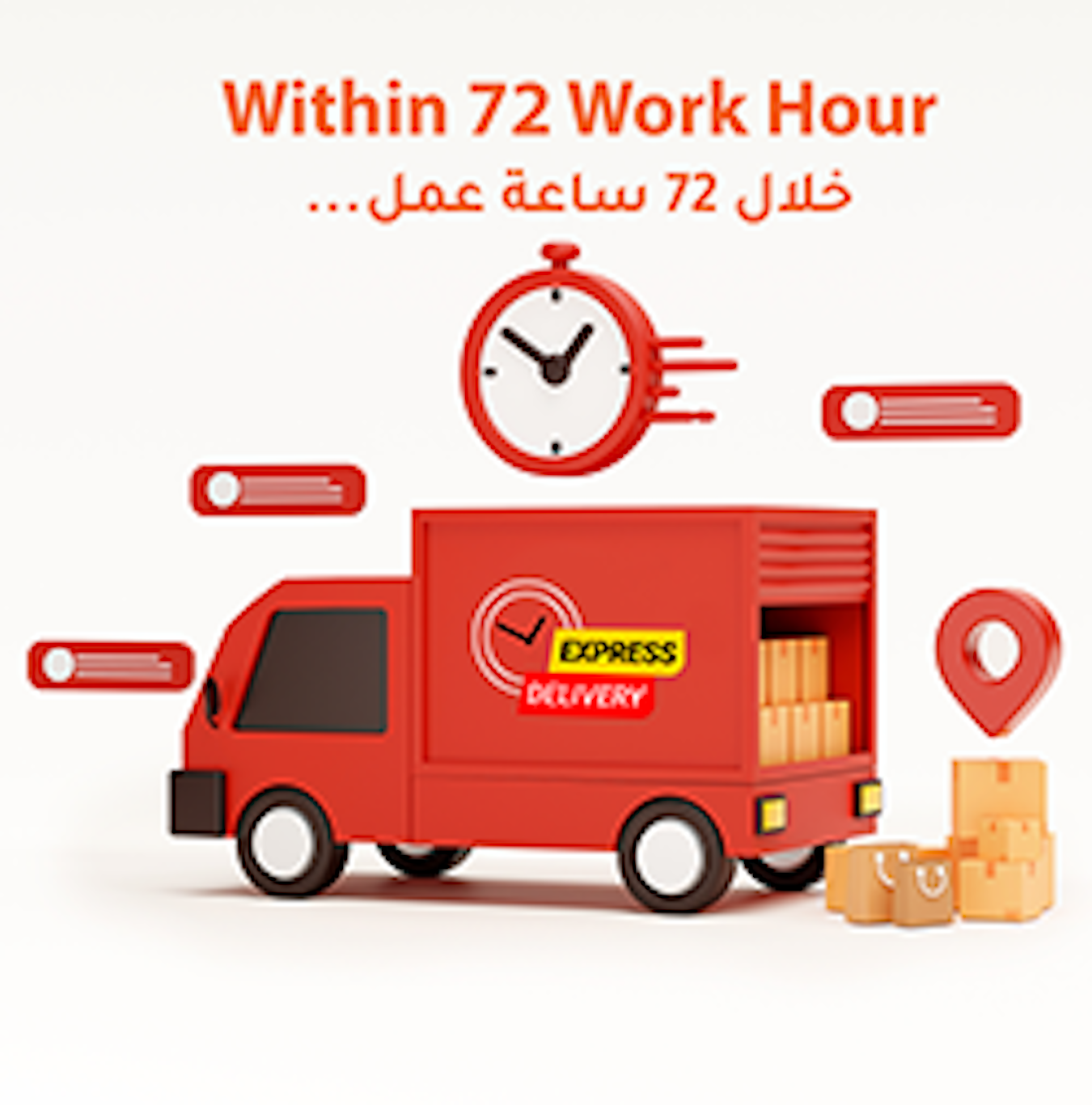 - توصيل سريع من الباب للباب مع خيارات في نفس اليوم أو اليوم التالي أو خلال 72 ساعة كحد أقصى