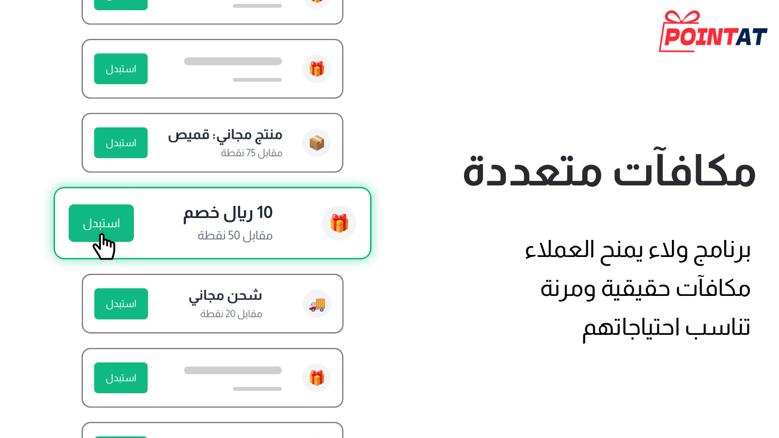 • أنظمة مكافآت متنوعة تشمل خصومات نقدية أو نسبية، منتجات مجانية، وشحن مجاني