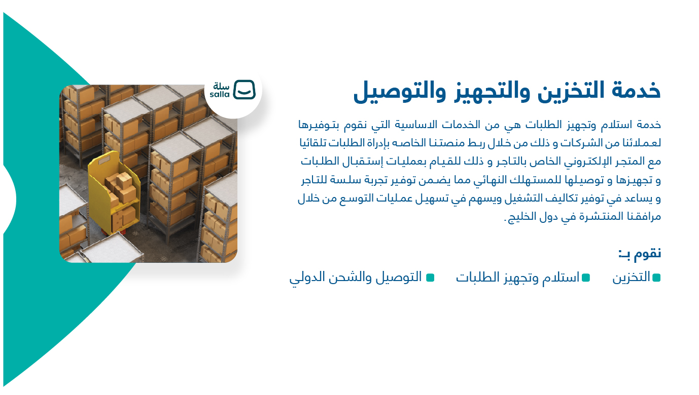 - تكامل مباشر مع متجر سلة لإدارة الطلبات بشكل تلقائي من الطلب حتى التسليم