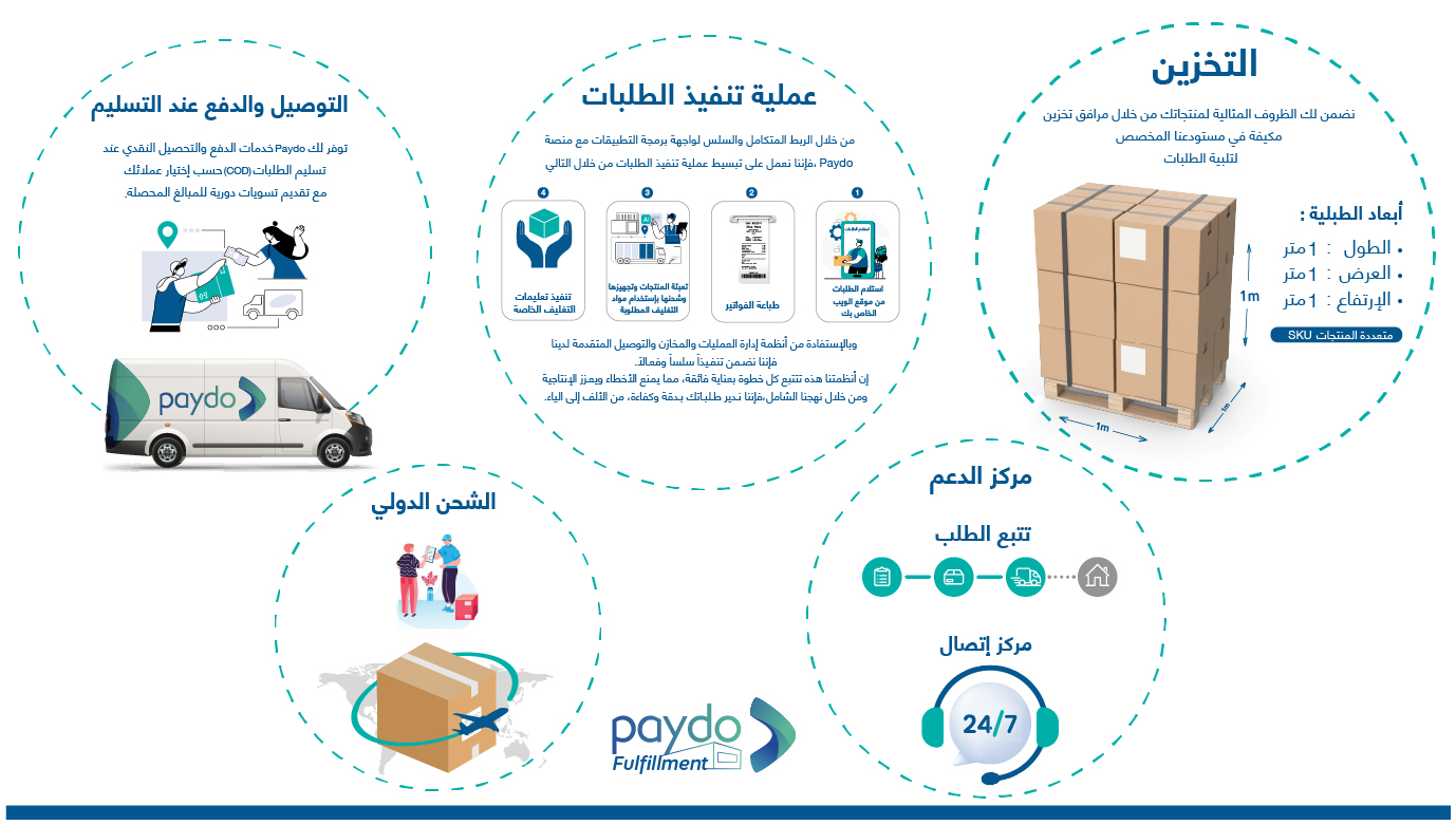 - إدارة تجهيز وشحن ومناولة الطلبات من خلال منصة إلكترونية متطورة