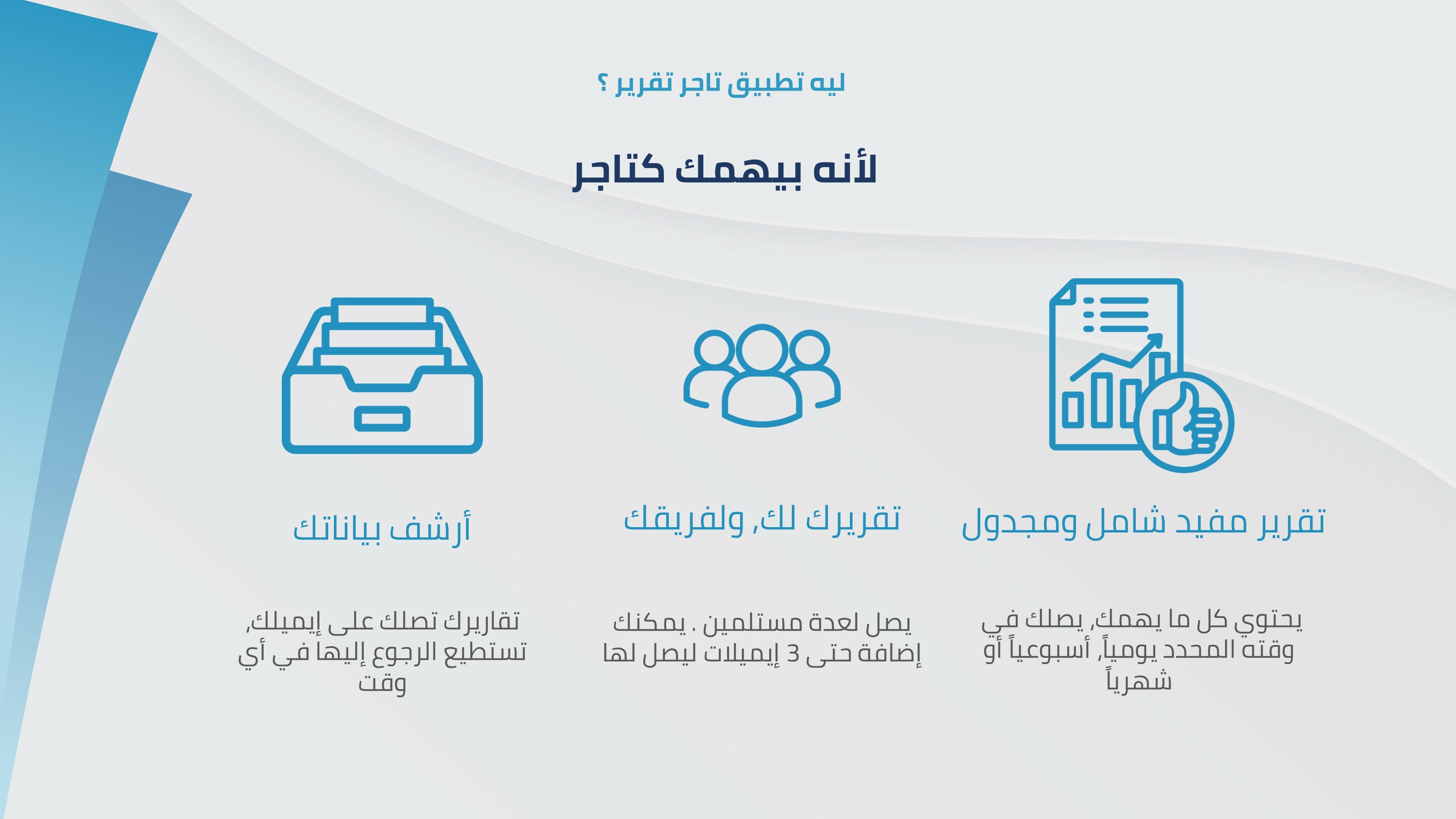 يعمل تطبيق “تاجر تقرير” بشكل تلقائي بالكامل بمجرد ضبط الإعدادات المبدئية لاختيار البريد الإلكتروني ونوعية التقارير وتحديد الجدولة المناسبة. لا حاجة لأي تدخل يدوي بعد الإعداد الأولي، حيث تصل التقارير إلى البريد المحدد تلقائياً بحسب التكرار المختار.