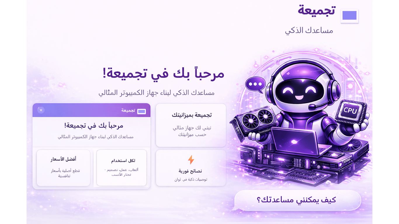 - توصيات ذكية مدعومة بالذكاء الاصطناعي لاختيار أفضل القطع بحسب الميزانية والاحتياج