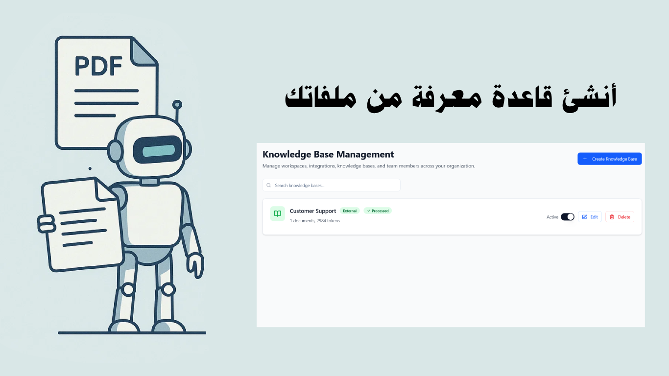 يتيح التطبيق تحميل ملفات خاصة بكل متجر، مثل كتالوج المنتجات وسياسات التوصيل أو الاستبدال أو قائمة الأسئلة الشائعة، ليستخدمها الوكيل الذكي في بناء قاعدة معرفية متخصصة. يتم تحديث هذا المحتوى فورًا عند تعديل الملفات، مما يوفر سيطرة كاملة ودقيقة على المعلومات التي تصل إلى العملاء خلال المحادثات.