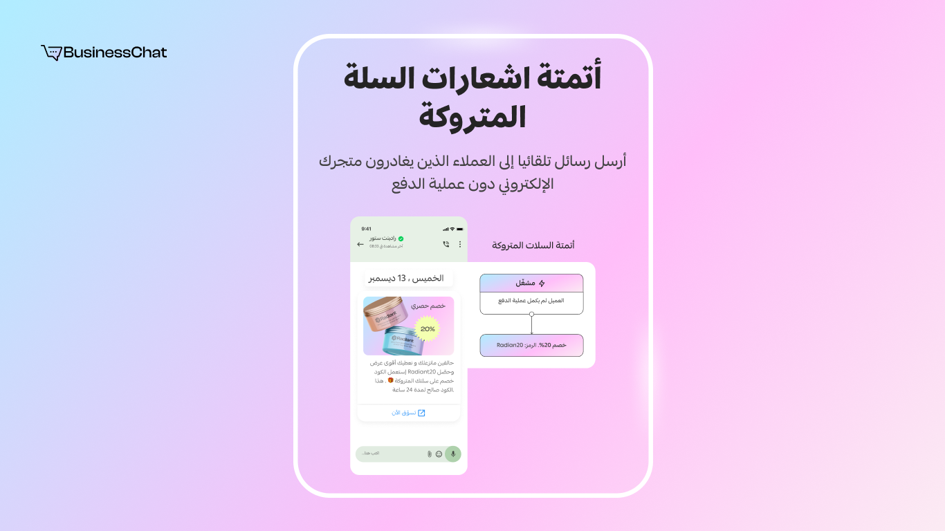 بدمج الرسائل مع العروض المخصصة، تصبح لدى متجرك ميزة تنافسية في كسب ثقة العملاء ورفع معدل إتمام الطلبات.
