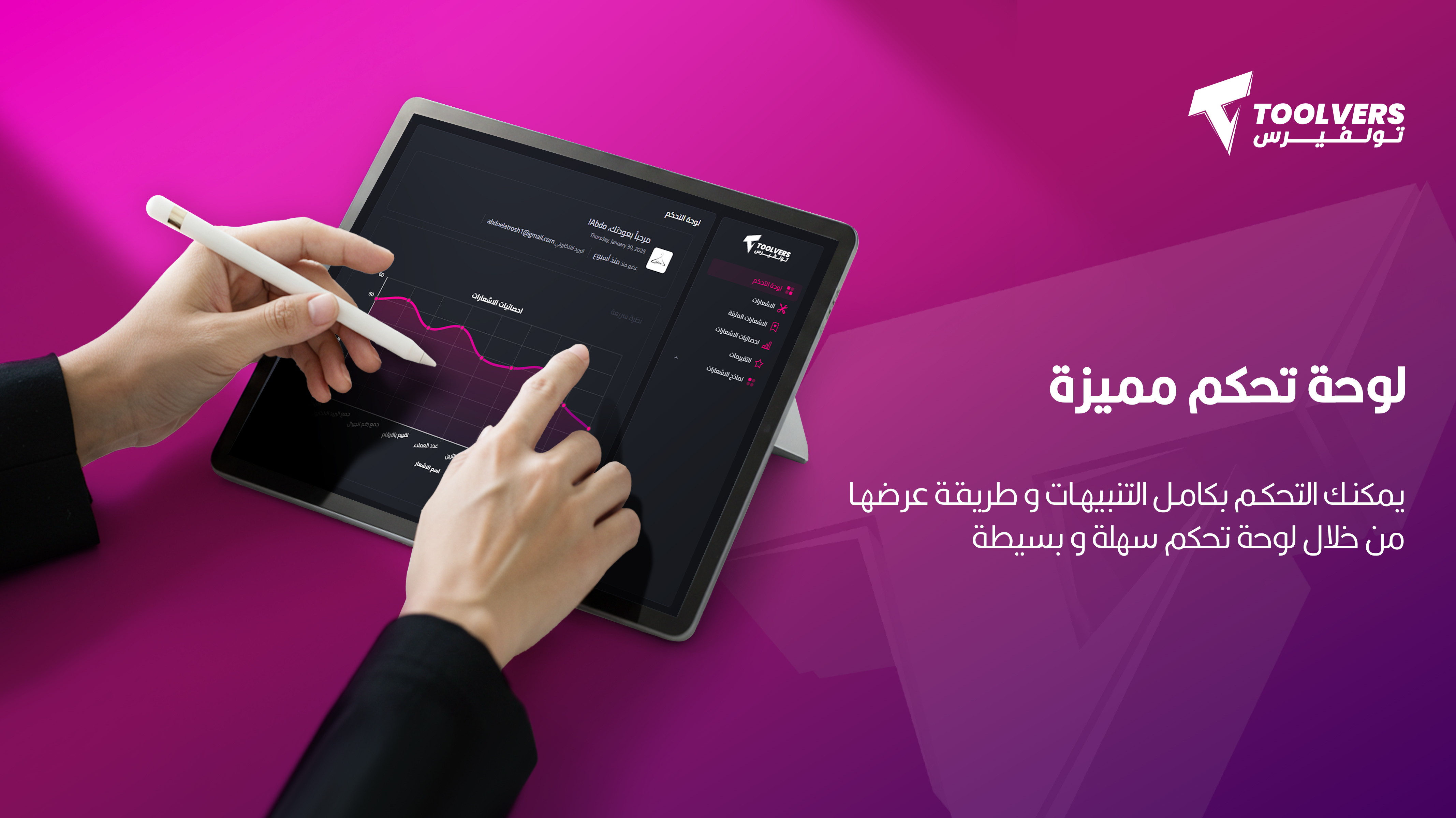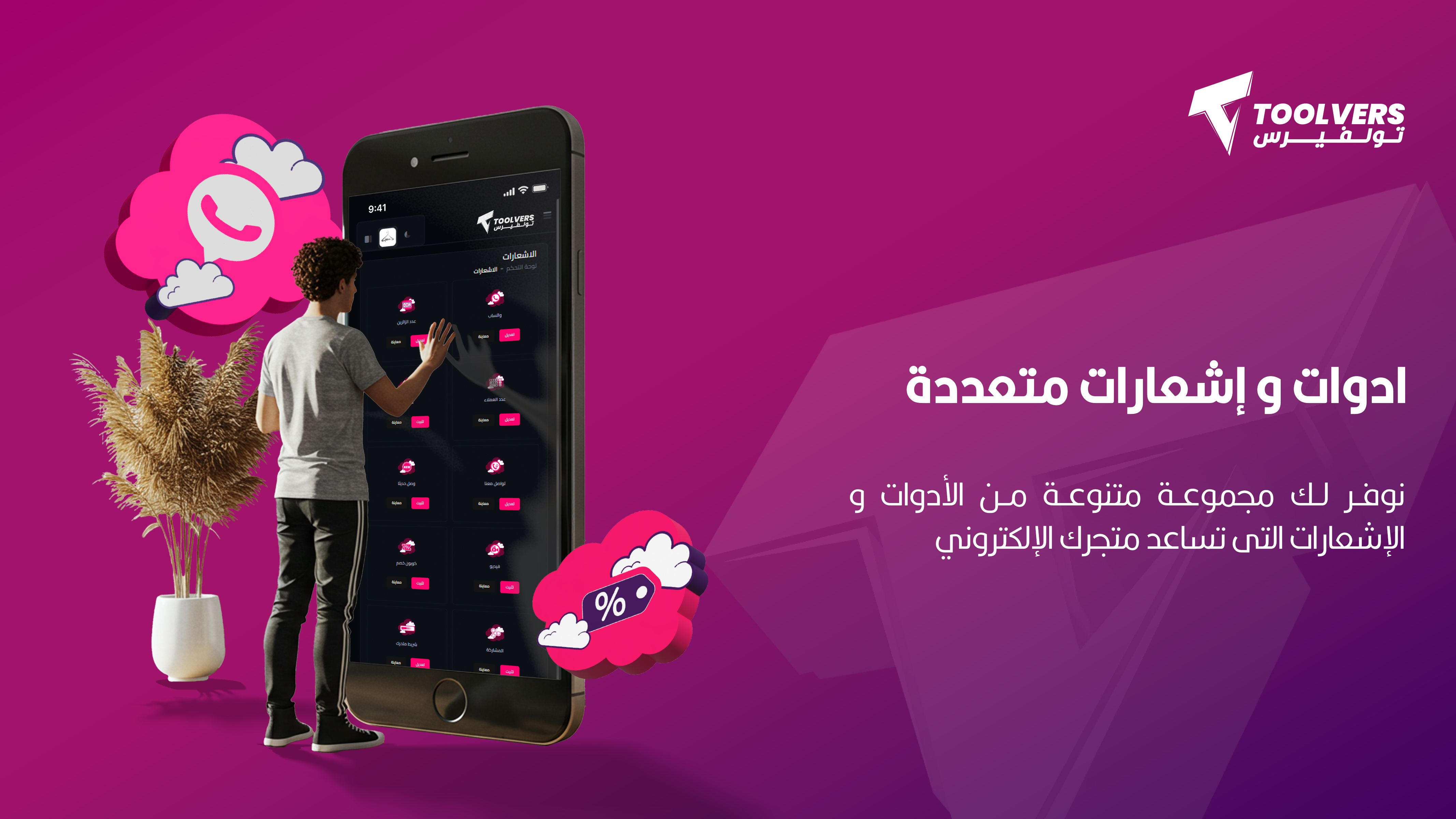 يعتمد تولفيرس على الربط المباشر بمتجرك في منصة سلة، فيتيح لك إطلاق مجموعة متنوعة من الأدوات التسويقية مثل الإشعارات والتنبيهات الترويجية القابلة للتخصيص. يمكنك من خلال لوحة التحكم الخاصة بالتطبيق إدارة كل أداة على حدة، ضبط إعداداتها، ومتابعة أدائها بشكل لحظي.