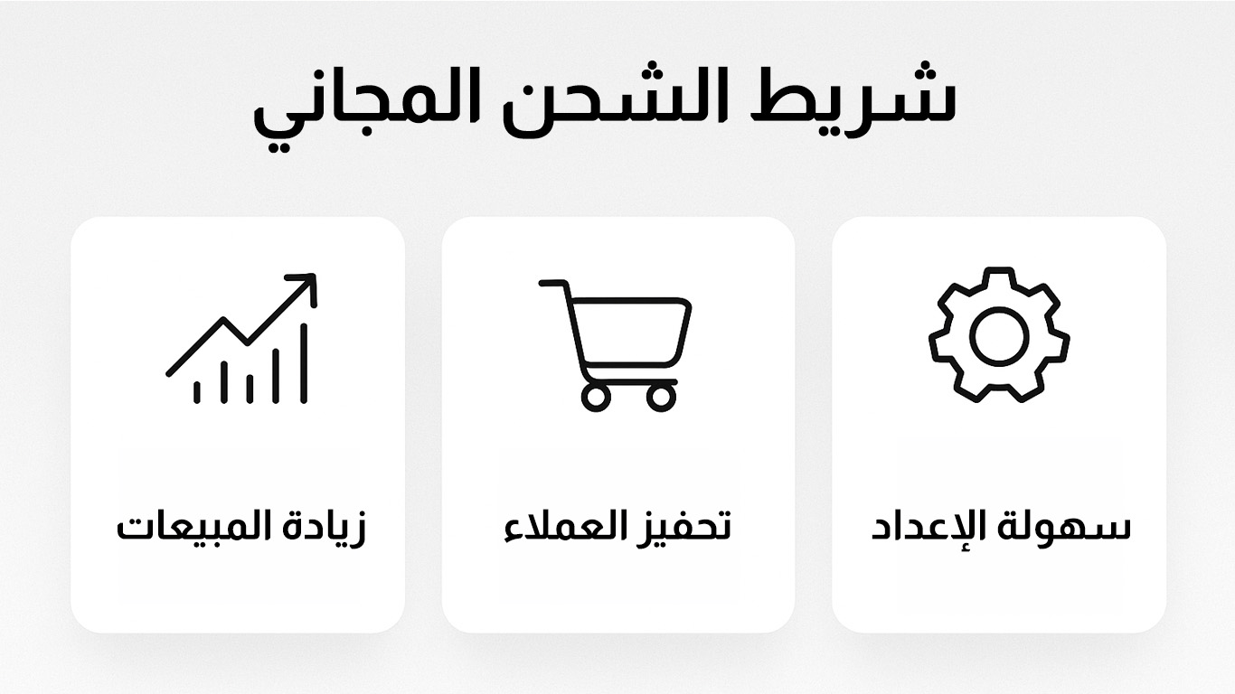 يمثل شريط الشحن المجاني أداة لتحفيز العملاء على إضافة المزيد من المنتجات إلى سلة التسوق بهدف الوصول إلى الحد الأدنى للاستفادة من الشحن المجاني، مما يؤدي بشكل واضح إلى زيادة متوسط قيمة الطلب. هذه الاستراتيجية تعزز من معدل التحويل وتقلل من عدد السلات المتروكة في المتجر.