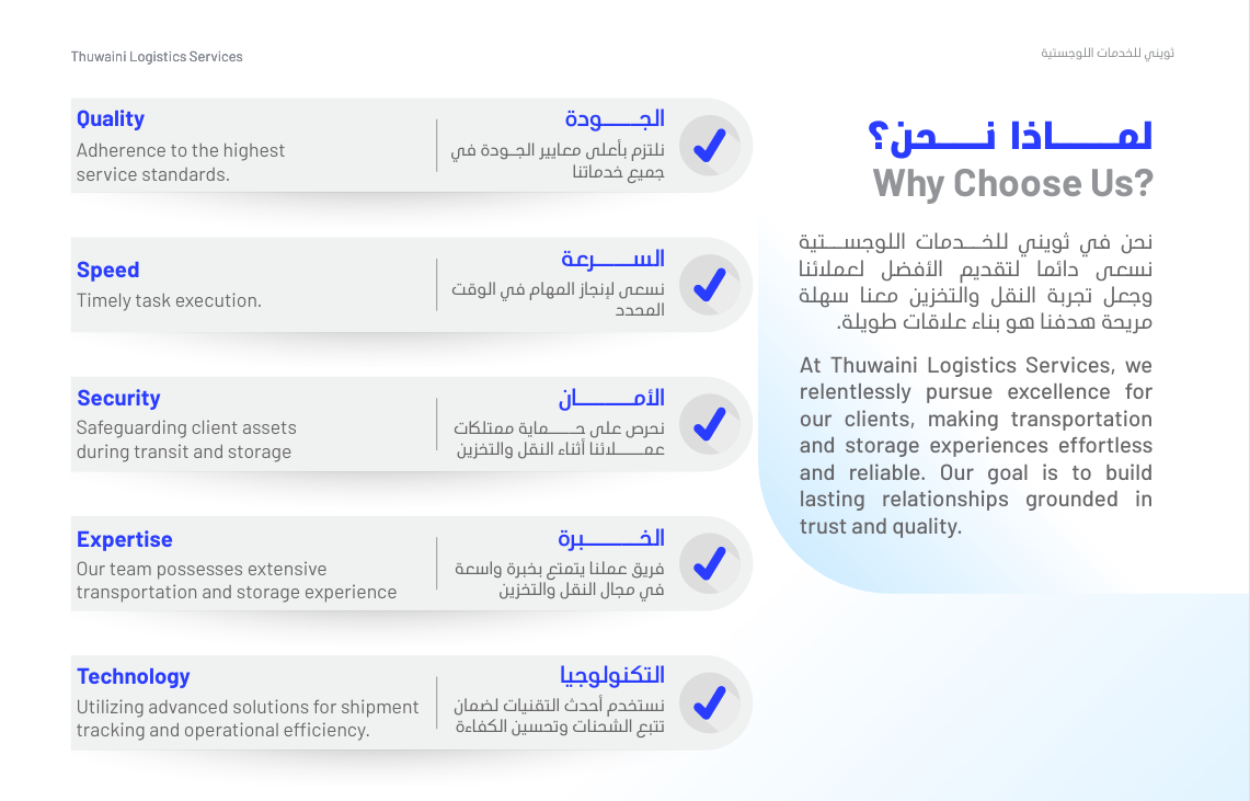 - فرز وترتيب الشحنات داخل مستودعات ثويني لضمان سرعة وكفاءة التوصيل