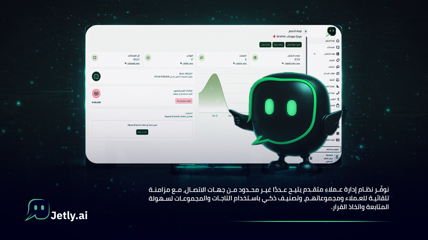 • نظام ذكي لإدارة جهات الاتصال مع إمكانية إضافة الملاحظات والتصنيفات المخصصة ومتابعة التفاعل