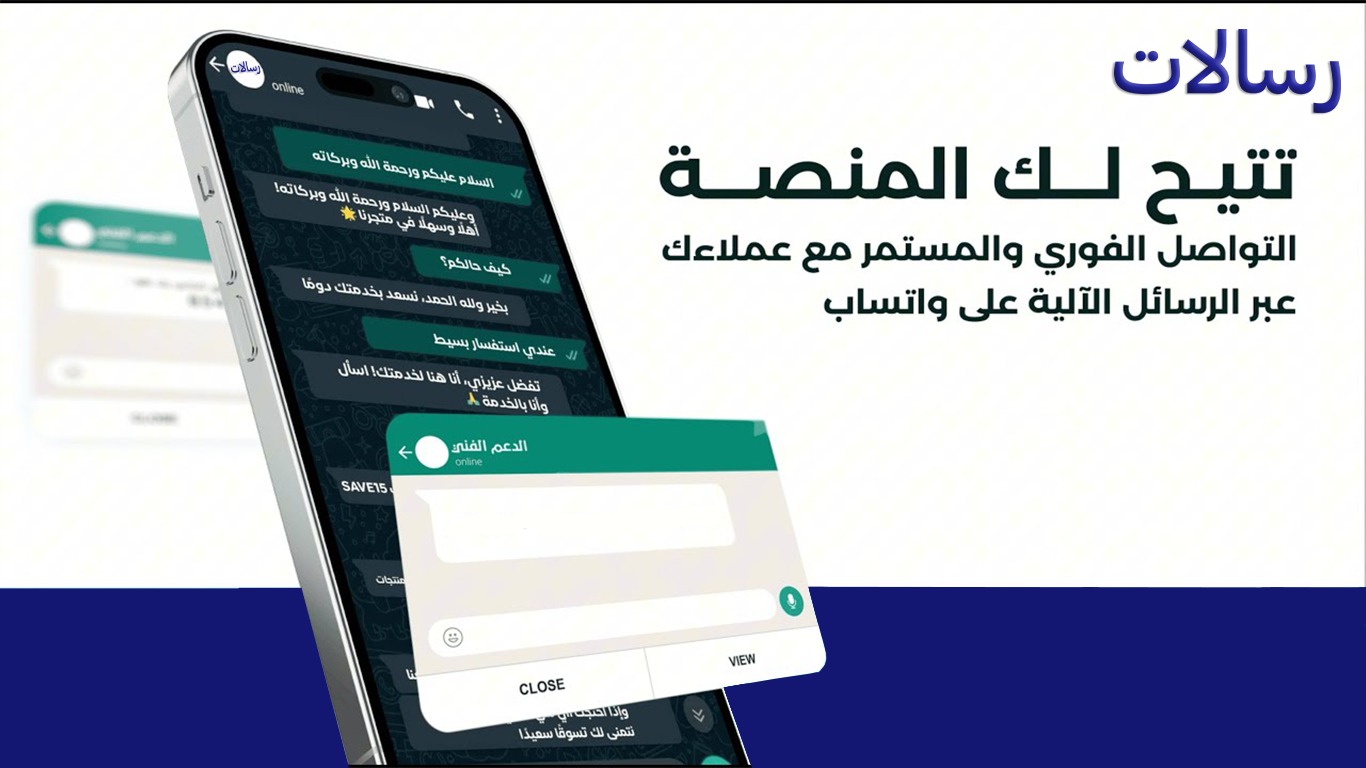 • ربط فوري ودون انتظار بين واتساب والمتجر، بدون تعقيدات أو إجراءات موافقة معقدة