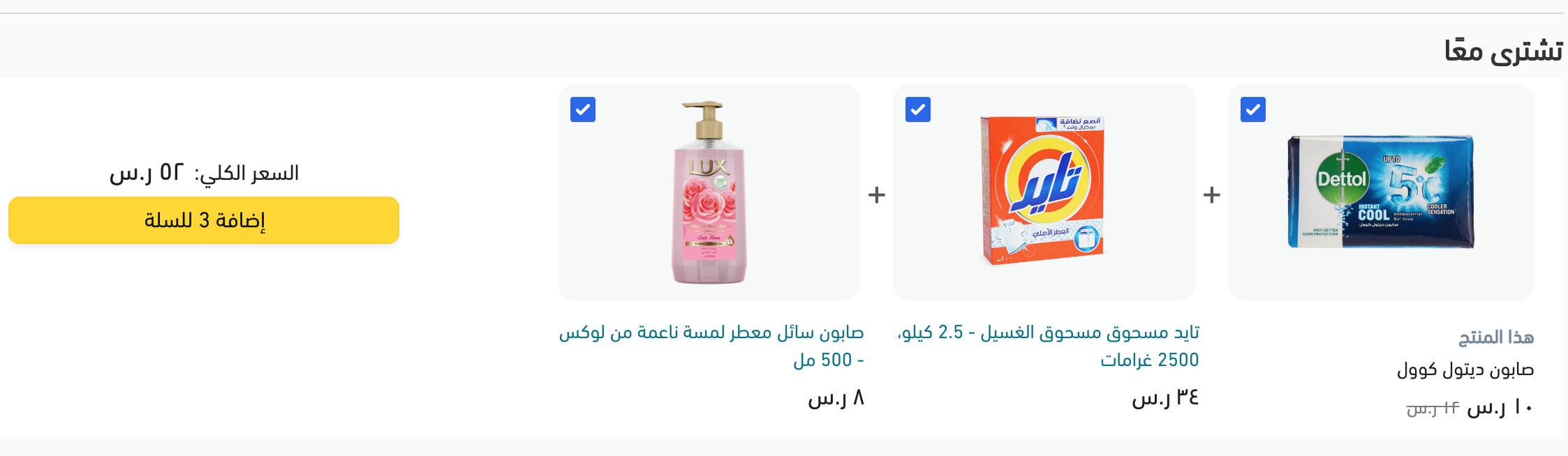 - عرض منتجات تُشترى معًا عادة في صفحة المنتج، ما يساعد الزبون لاتخاذ قرار شراء متعدد بسرعة