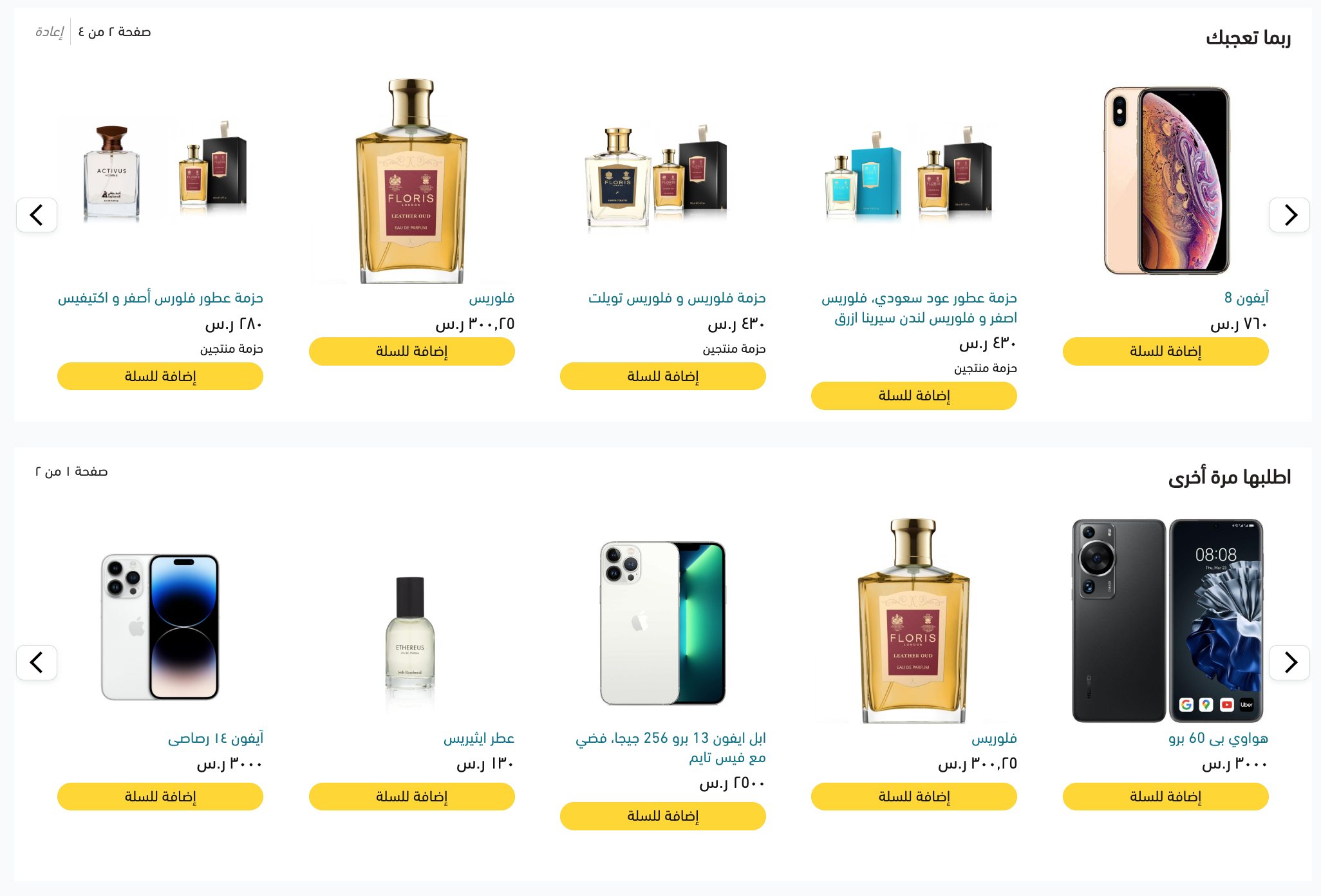 - تقديم توصيات متنوعة مثل «الزبائن اشتروا أيضًا»، «الأكثر مبيعًا»، أو منتجات مستوحاة من تاريخ تصفح المستخدم