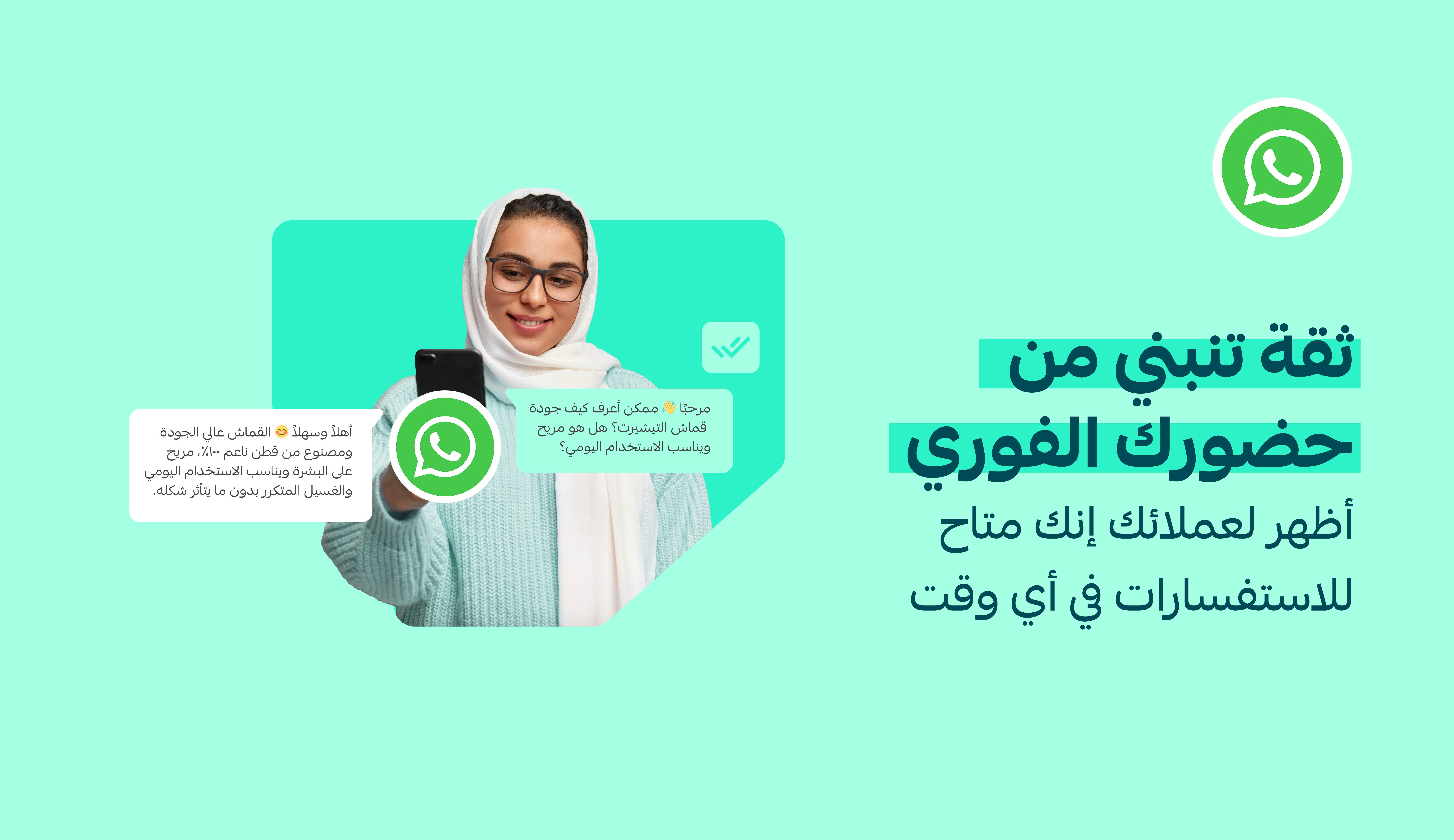 كذلك، يرفع التطبيق من مستوى الثقة بين المتجر والعملاء، حيث توفر قناة دعم معروفة وسهلة الاستخدام مثل واتساب تساهم في بناء ولاء أكبر وتحسين الصورة الذهنية للمتجر الإلكتروني.