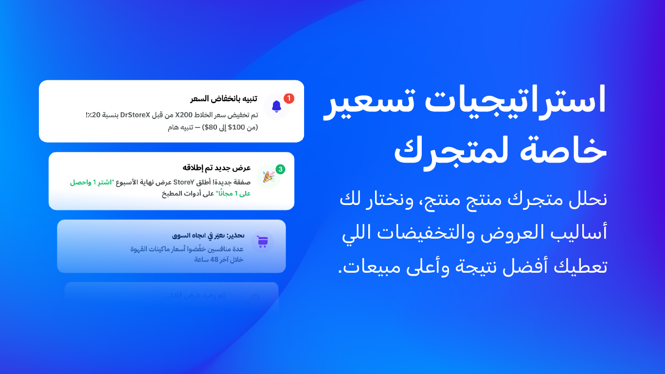 • مراقبة مستمرة لأسعار أبرز المتاجر المنافسة ضمن نطاق المتجر لمواكبة السوق باستمرار