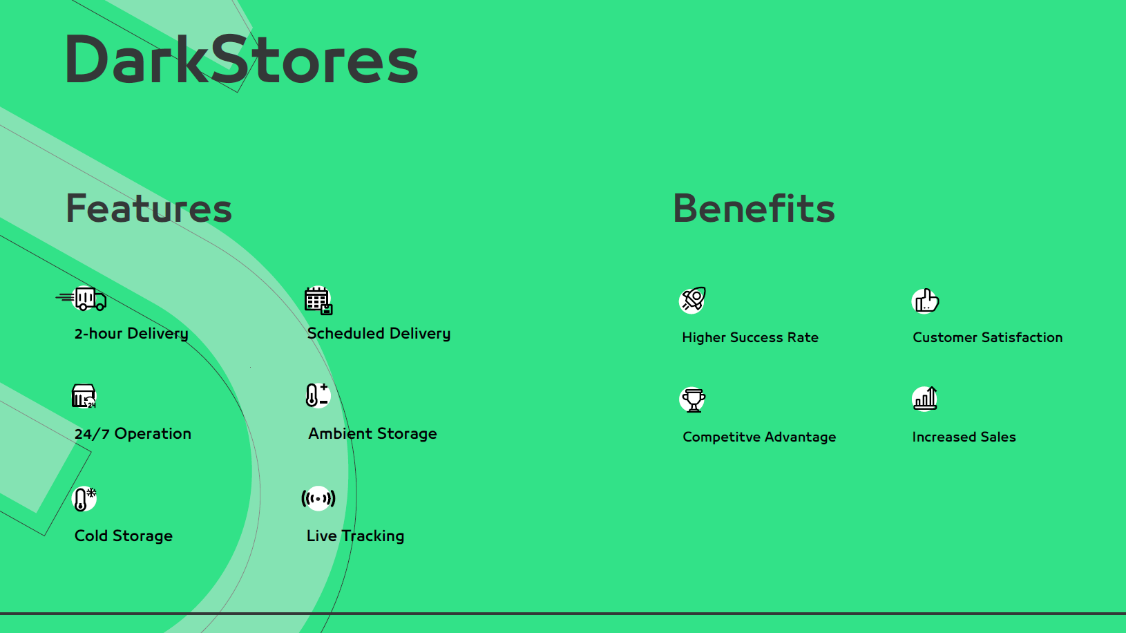 - توصيل فائق السرعة: تضمن الخدمة توصيل المنتجات للعملاء خلال ساعتين من وقت الشراء، ما يعزز من رضا العميل.