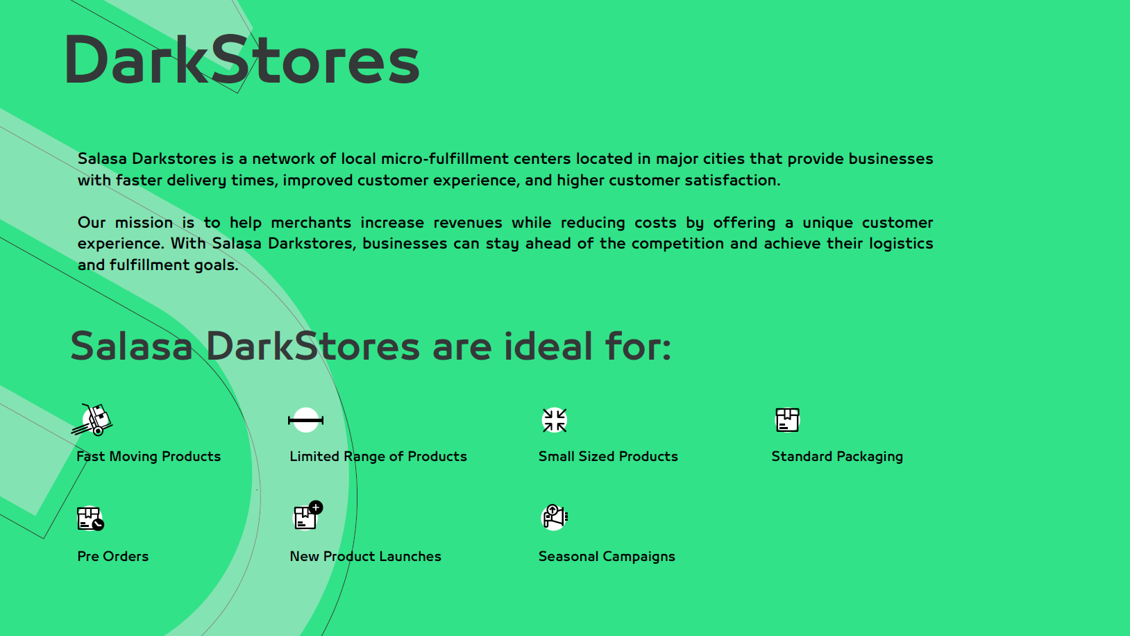 يقدم تطبيق “سلاسة دارك ستور” حلاً مبتكرًا لأصحاب المتاجر الإلكترونية ضمن منصة سلة، حيث يركز على تسريع عمليات التوصيل وتحسين تجربة العميل بشكل ملموس. تستهدف هذه الخدمة كل من يسعى لخفض أوقات تسليم الطلبات للعملاء، مع باقة خيارات تناسب المنتجات سريعة الطلب والمنتجات الحساسة للحرارة. يعتمد التطبيق على مفهوم الدارك ستور — أي تهيئة فروع أو مراكز لوجستية خاصة لتخزين وتجهيز طلبات المتجر بسرعة وكفاءة.