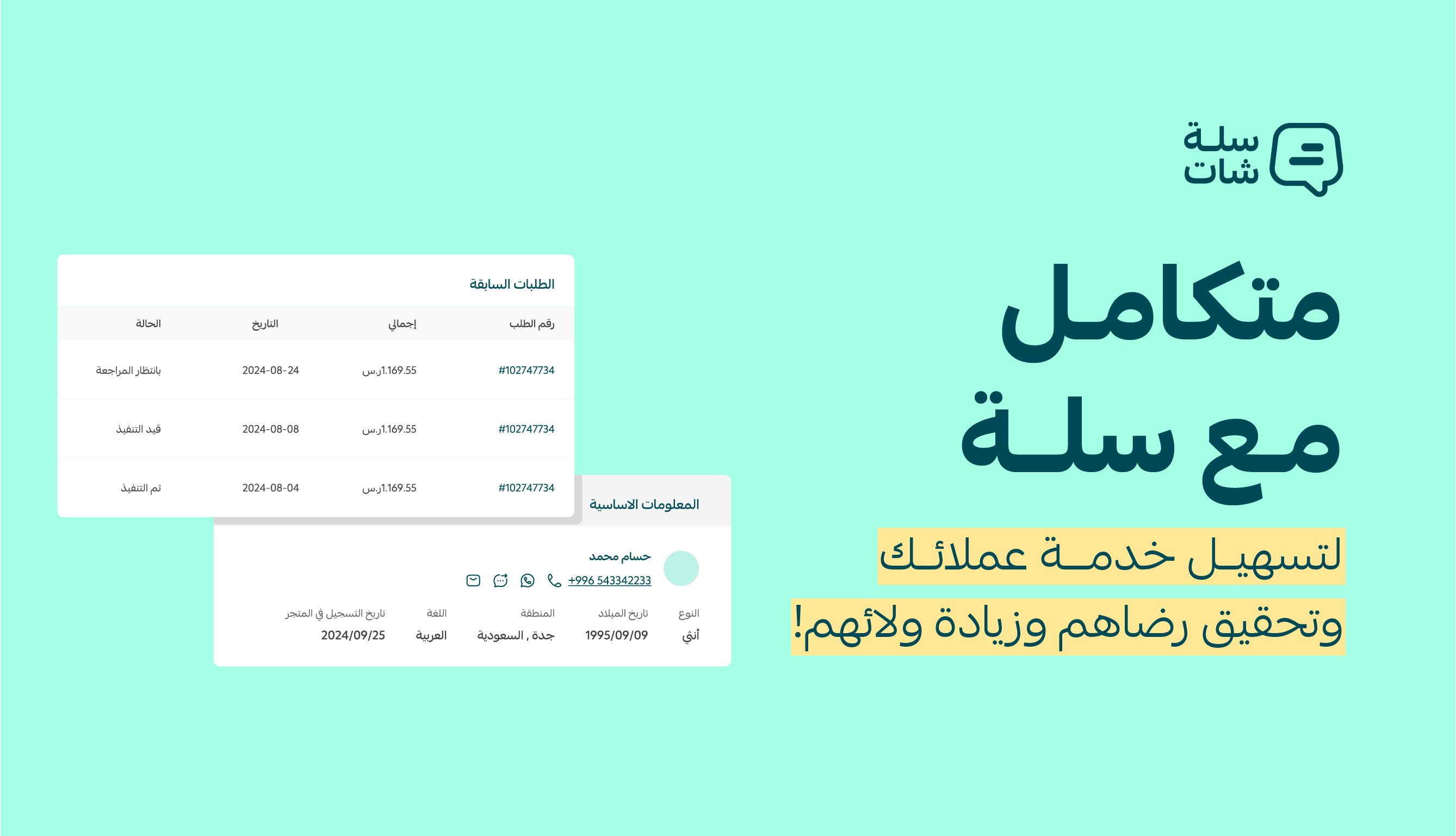 - عرض فوري ومتكامل لبيانات العميل بجانب كل محادثة ليسهل فهم خلفية الاستفسار