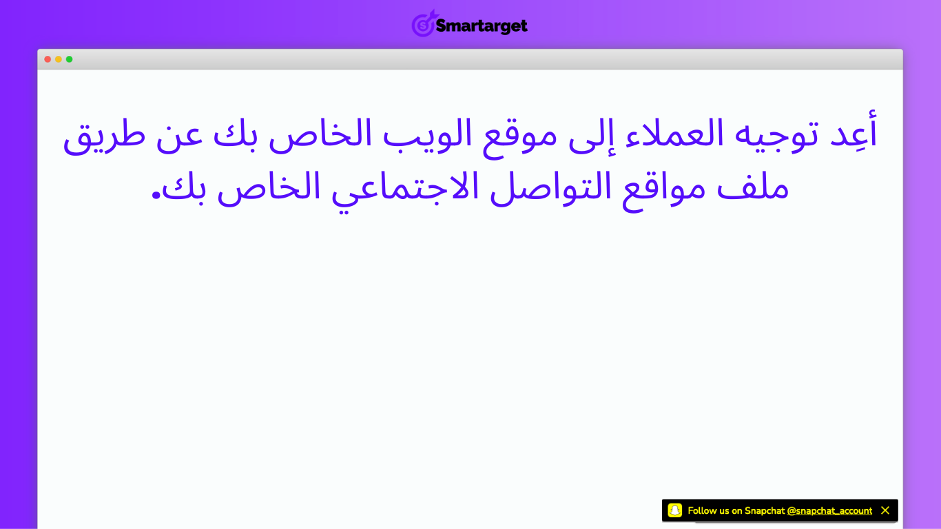 يتم توجيه العملاء مباشرة إلى حساب سناب شات عند النقر على الرسالة، مما يجعل الانتقال إلى المنصة سلسًا وسريعًا، ويرفع من معدلات التفاعل الاجتماعي مع العلامة التجارية الخاصة بك.