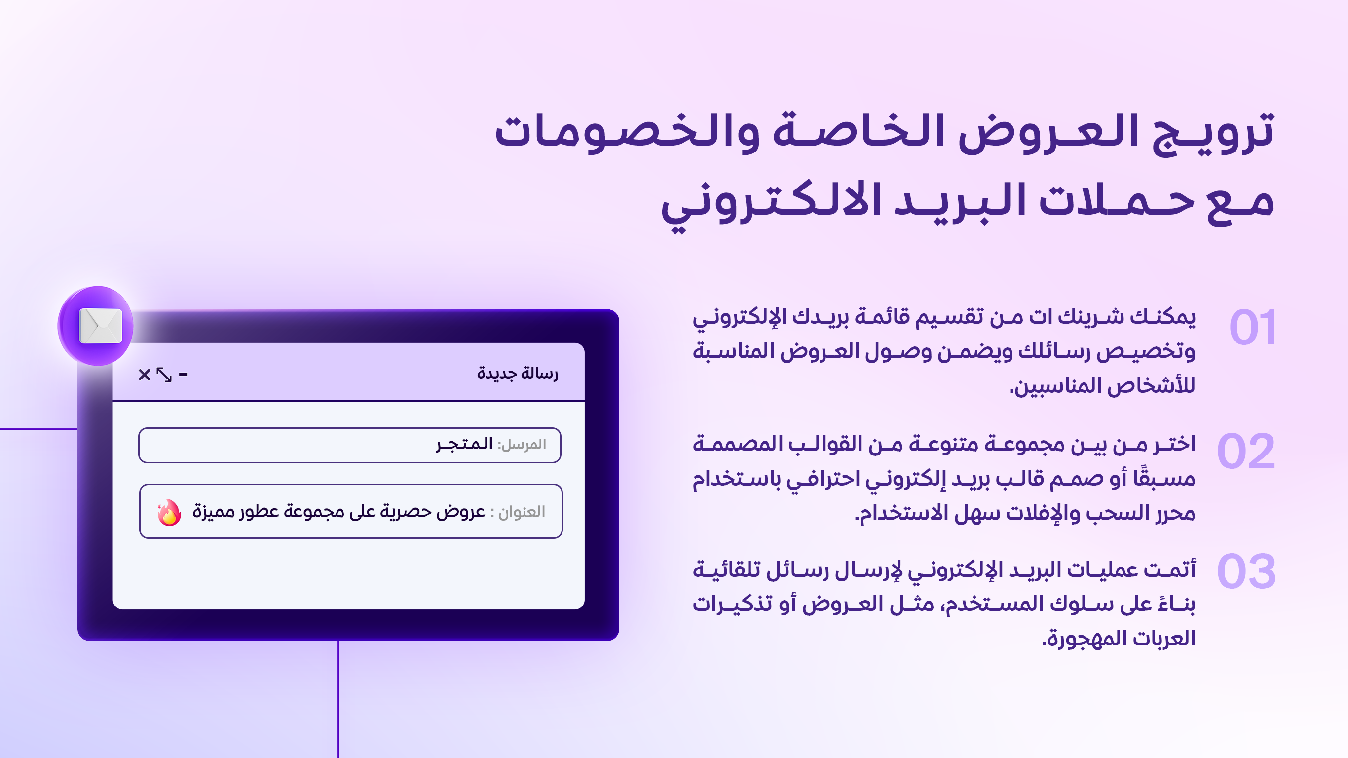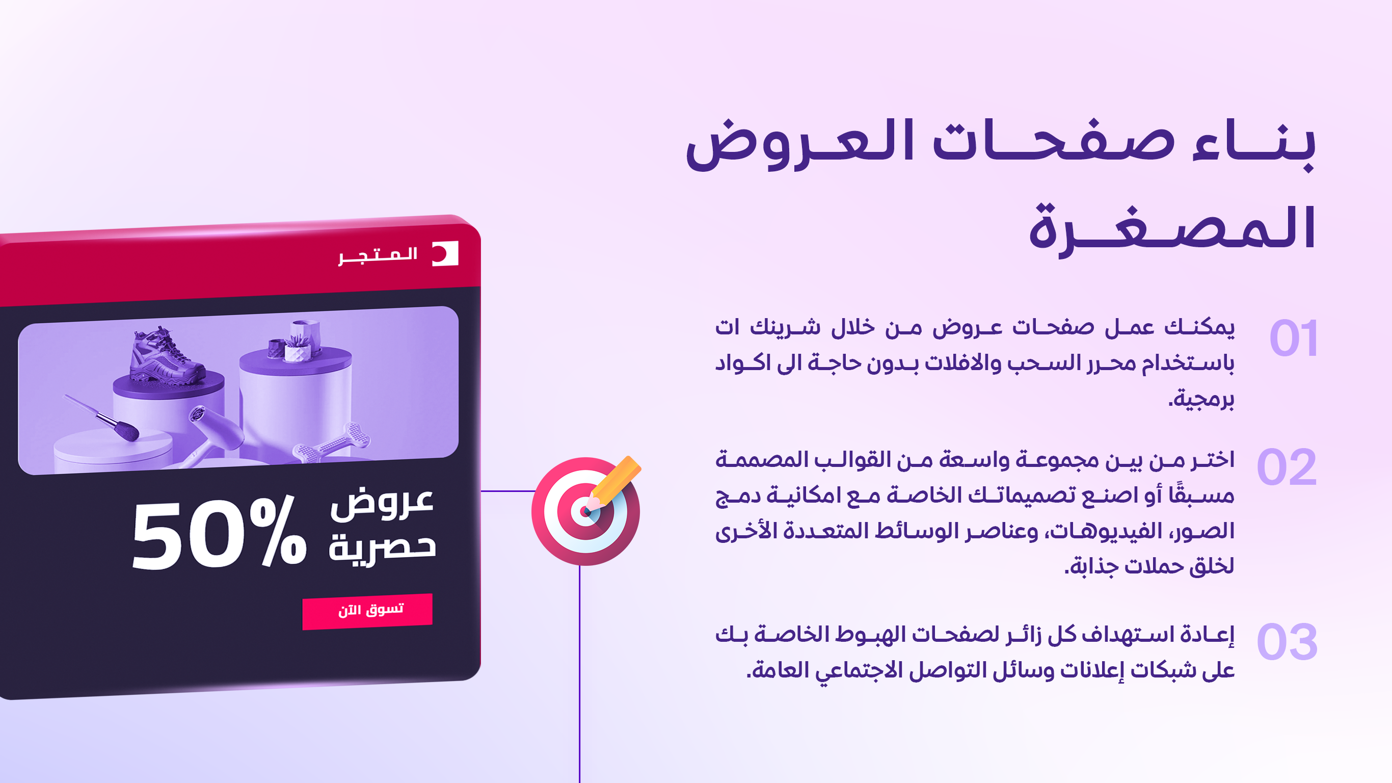 تتوافر كذلك إمكانية تخصيص نصوص الرسائل والعروض وعناصر الحملات، بهدف مطابقة هوية المتجر أو مناسبة العرض للعميل المستهدف.