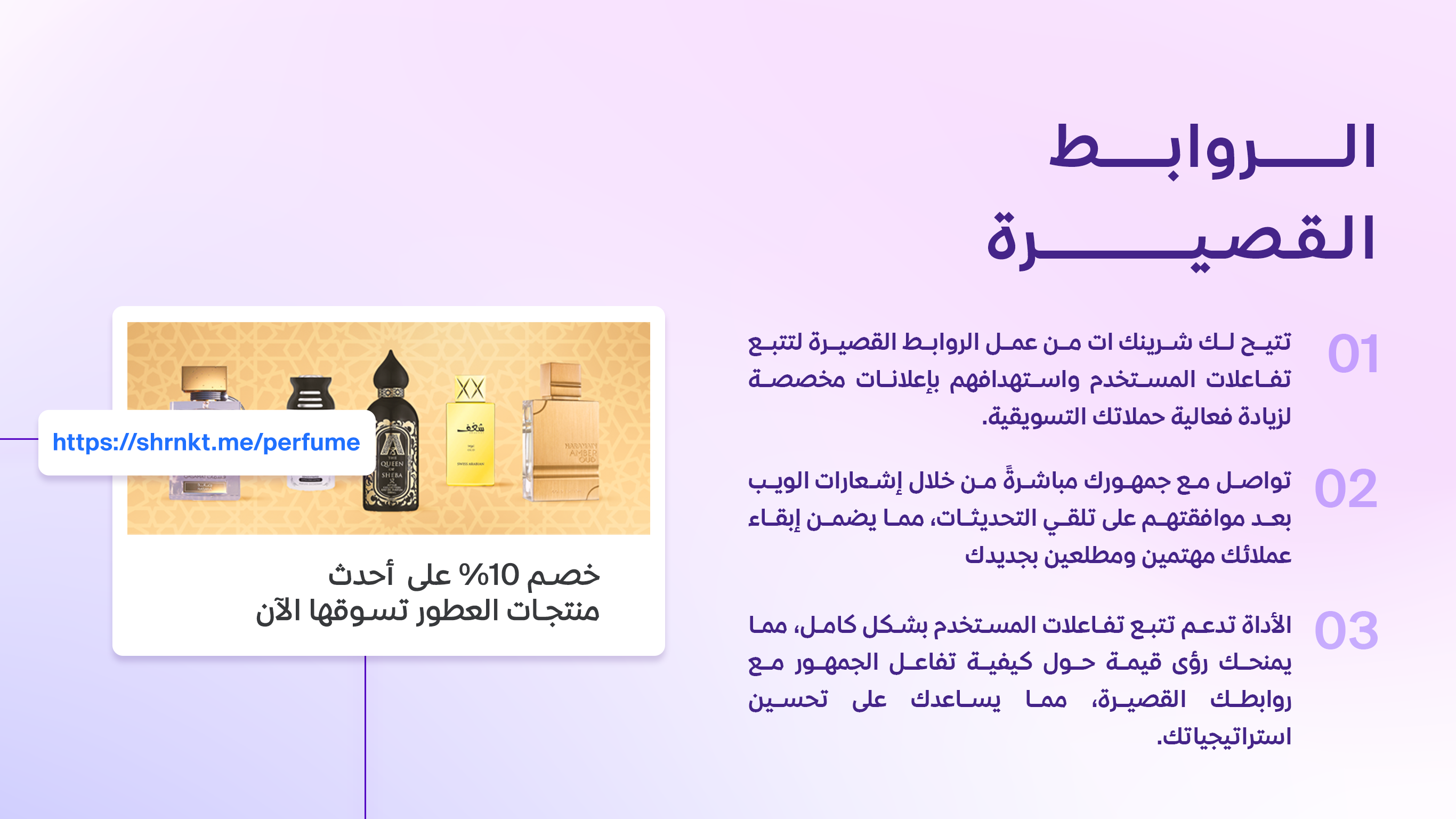 • تتبّع أداء الحملات عبر روابط قصيرة لمعرفة مدى تفاعل العملاء مع كل حملة إعلانية