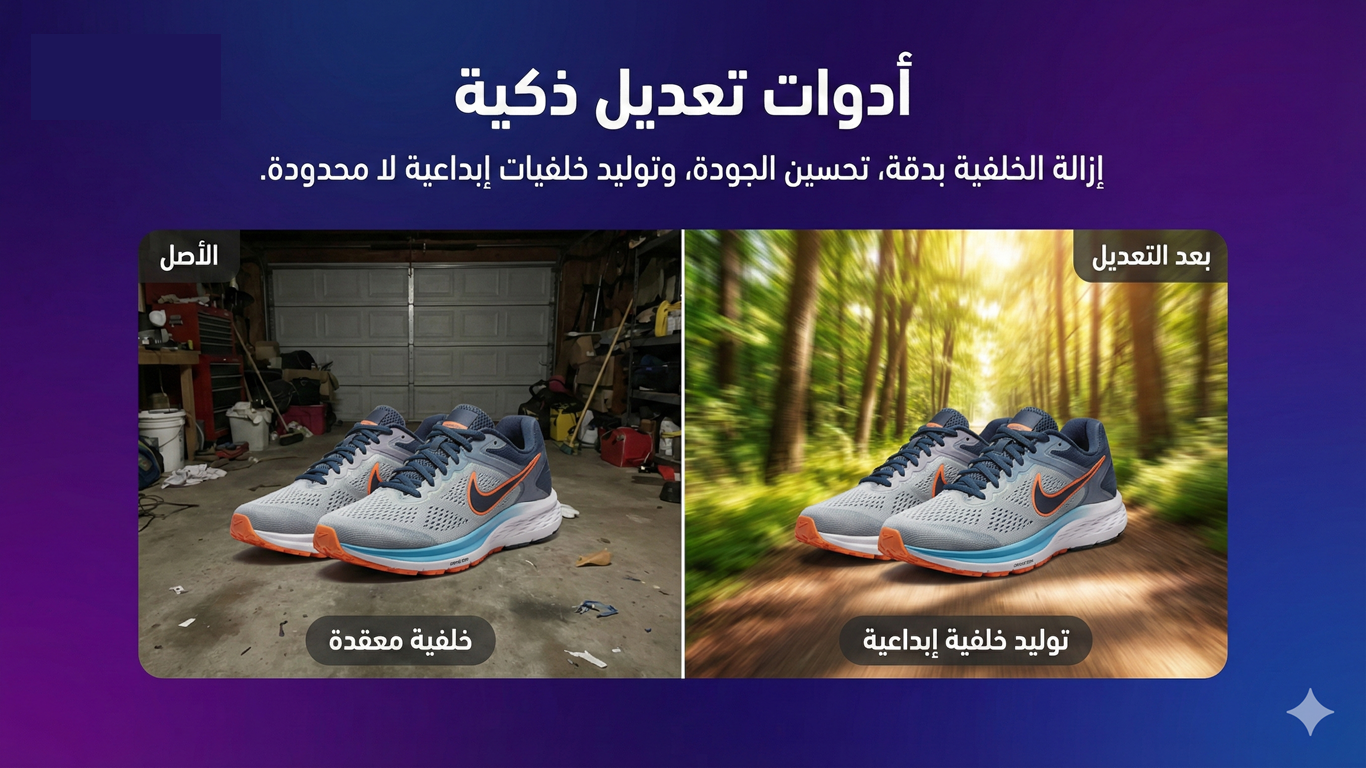 - إزالة الخلفيات من الصور الأصلية واستبدالها بخلفيات تتماشى مع هوية العلامة التجارية للمتجر