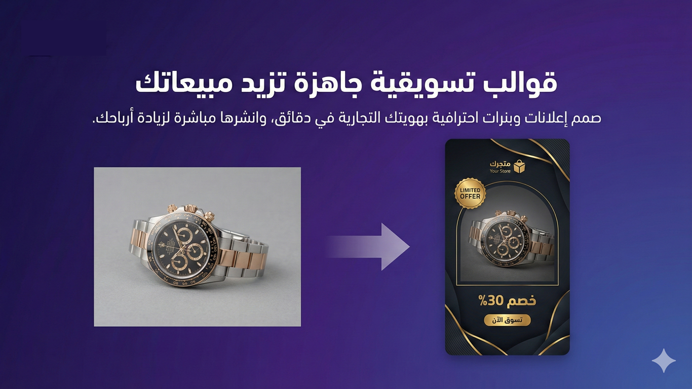 تتيح أدوات التطبيق إنتاج تصاميم متجددة ومتنوعة لتتماشى مع المناسبات أو الحملات التسويقية الخاصة، مما يعزز البصمة المرئية للمتجر ويمنح المنتجات طابعًا فريدًا في كل مرة.