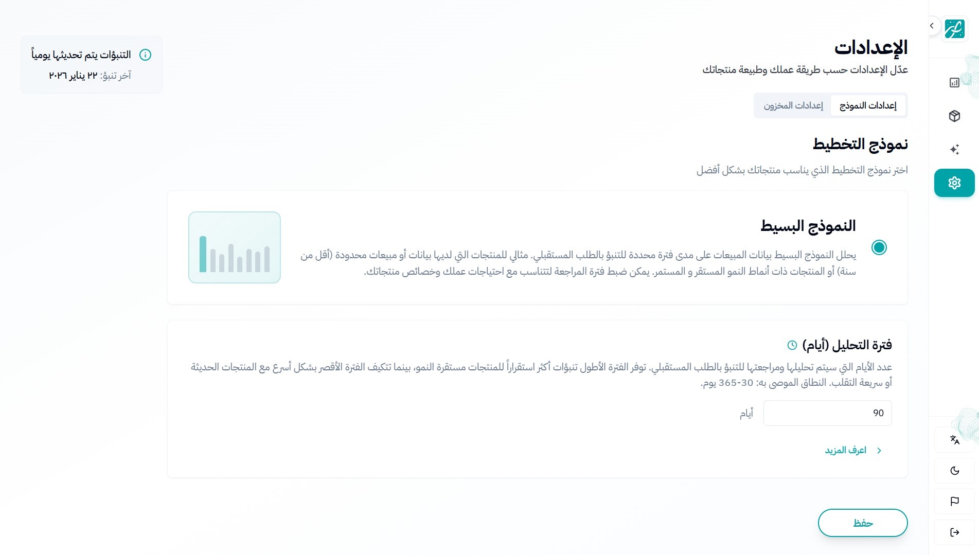 تم تصميم التطبيق ليعمل تلقائيًا دون الحاجة لإجراءات يدوية معقدة من قبل التاجر. بمجرد تثبيت فورسين من متجر تطبيقات سلة وربط المتجر، تبدأ خاصية التحليل وجمع البيانات فورًا، وتتجدد التنبؤات تلقائيًا يوميًا لضمان مواكبة أي تطورات في المبيعات.