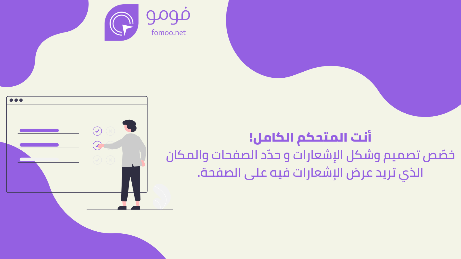 - تحديد أماكن ومواضع الإشعار والصفحات التي تظهر عليها حسب رغبتك